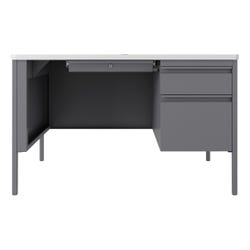 Lorell Fortress White/Platinum Steel Teachers Desk, Right Pedestal, Mobile, 48 x 30 x 29-1/2 Inches, White/Platinum