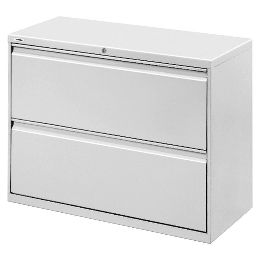 Lorell Telescoping Suspension Lateral File with hanging file rails facilitates side-to-side filing in letter-size, legal-size or A4-size folders. File contains two-Drawers and each-Drawer features a magnetic label holder for easy identification. The four adjustable leveling glides offer stabilization and the ball-bearing slide suspension facilitates smooth operation. The interlock system inhibits the extension of more than one-Drawer at a time and the counterweight avoids tipping. It comes with a core-removable lock for security, dual locking bars, full-width pull and a reinforced base. 42 W x 18-5/8 D x 28-1/8 H inches. Light Gray. Meets or exceeds applicable ANSI or BIFMA standards.Features