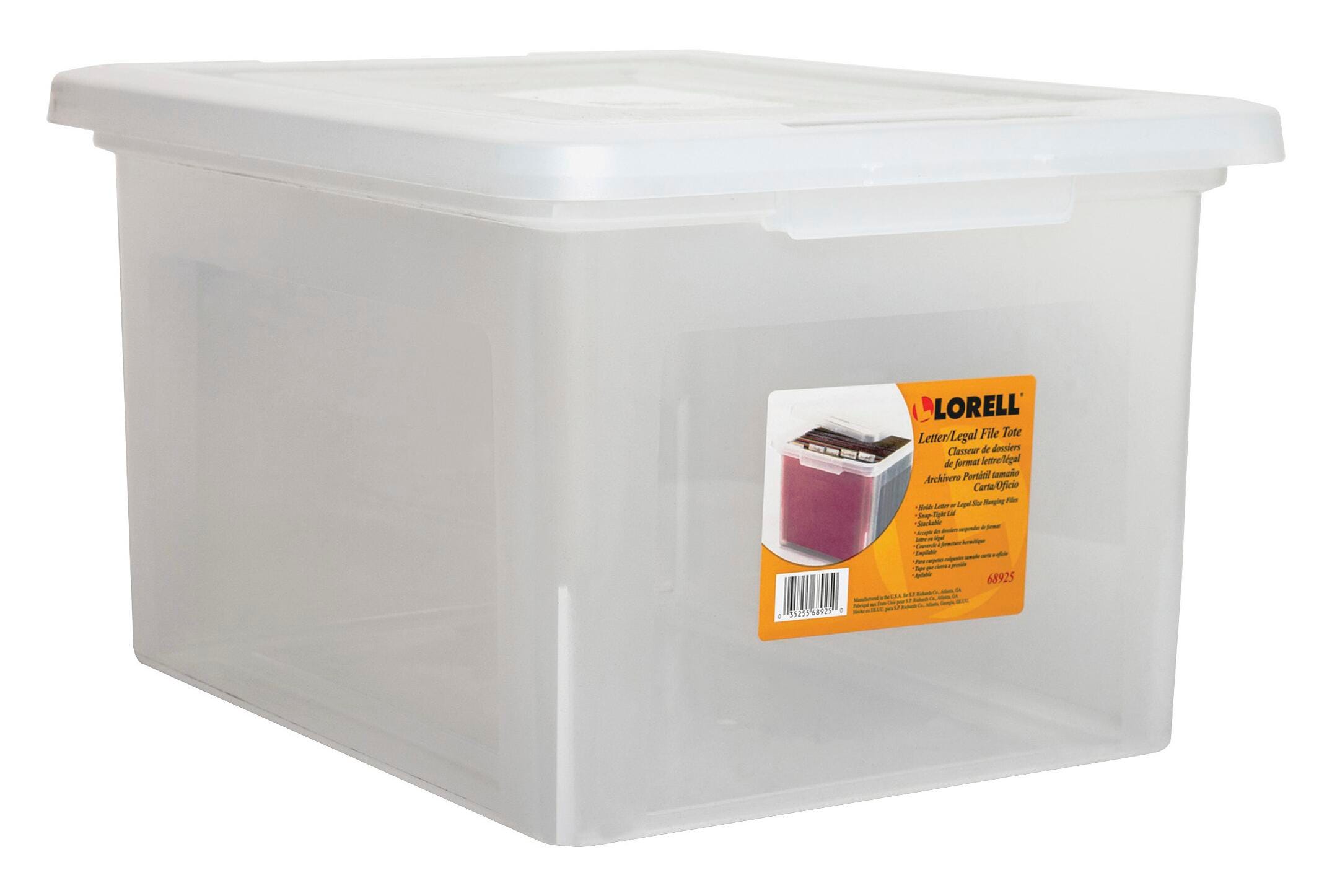 LORELL Clear Stackable Letter/Legal File Box measuring 13-3/16 in x 18-1/4 in x 10-15/16 in is featured with interlocking lid snaps tight for secure stacking of multiple units. Box is ideally used to store letter- or legal-size hanging files.