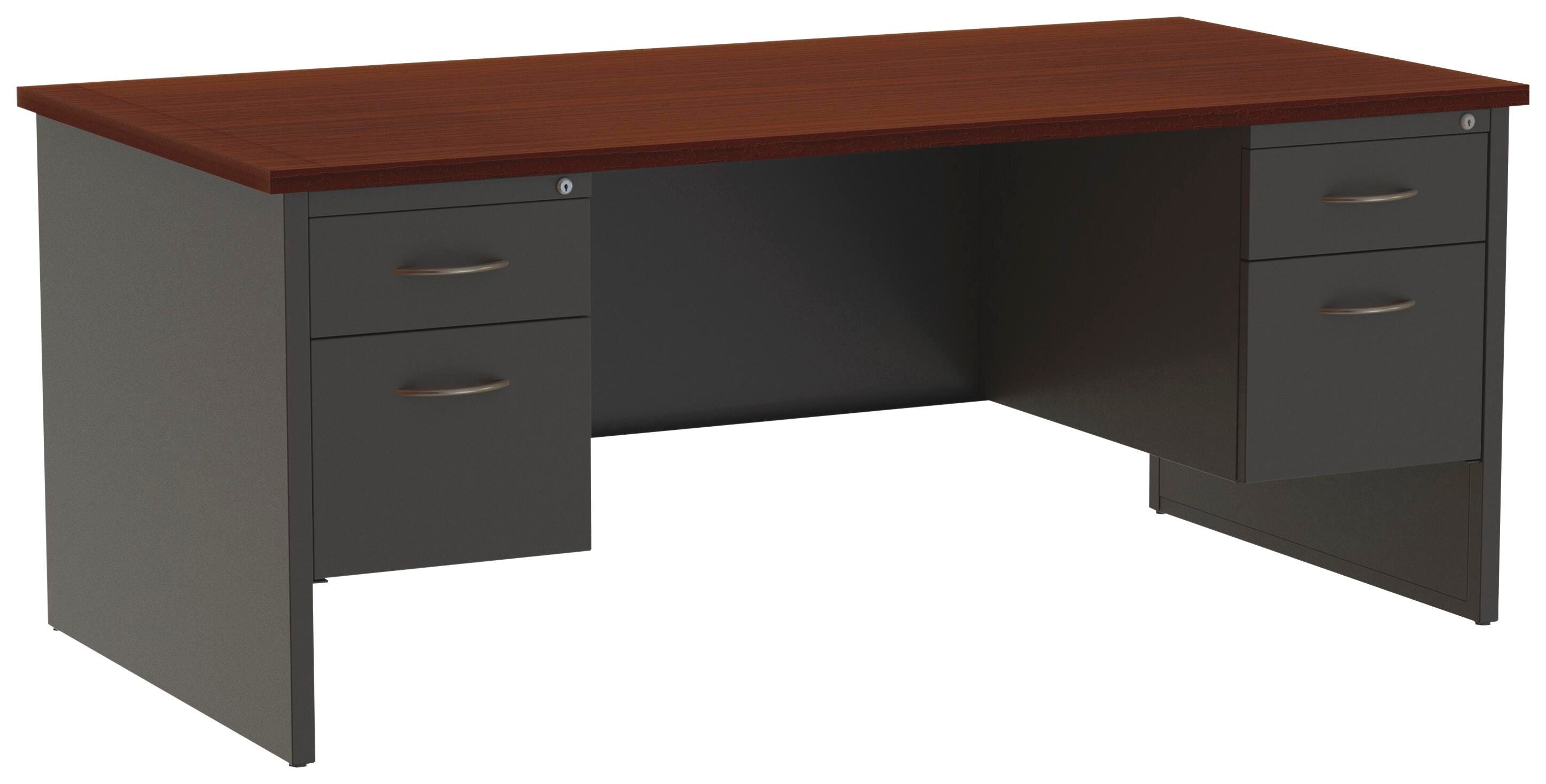Lorell Mahogany Laminate/Charcoal Modular Desking, Double Pedestal Desk, 72 x 36 Inches, Mahogany/Charcoal