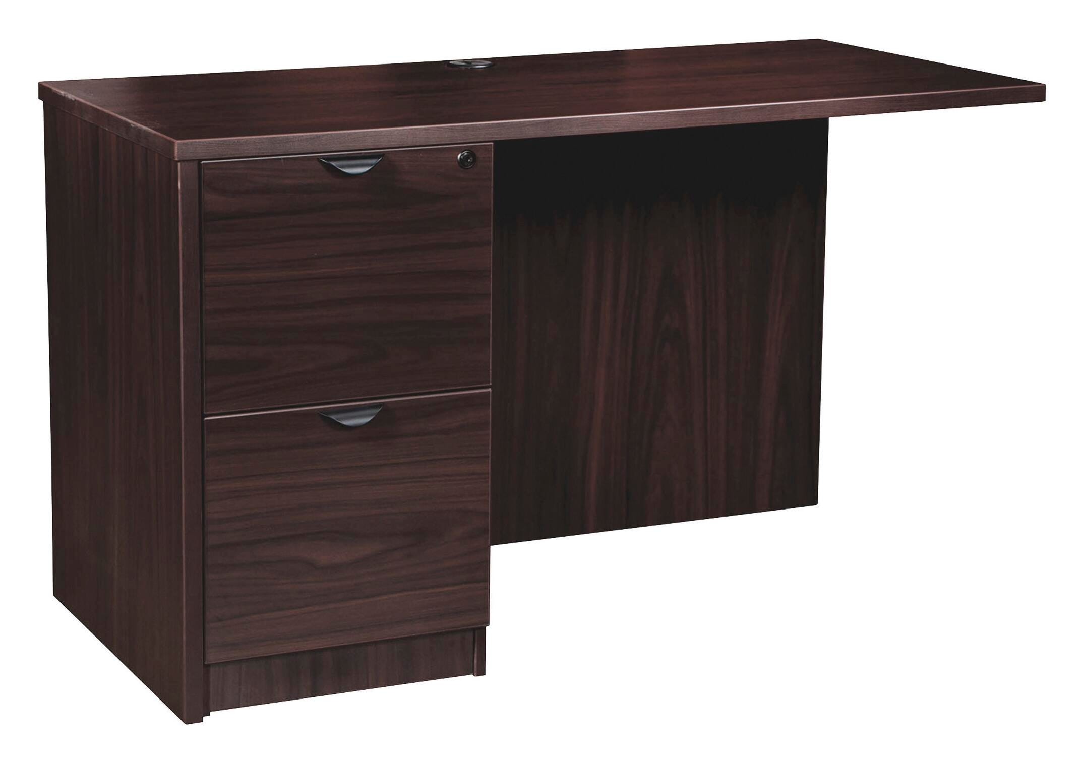 Left return desk pairs perfectly with right-pedestal desks or credenzas to create L-shaped and U-shaped configurations. Durable, espresso laminate surface is mar-resistant, burn-resistant and impact-resistant to withstand hectic, daily work life. The 1-inch thick top with matching 3mm edgebanding is made with 45-pound density particleboard and finished on both sides with high-performance, thermally fused melamine. Return features a full modesty panel and a full pedestal with two locking file drawers to secure important files. File drawers hold letter-size or legal-size hanging files with included hangrails and have 100 pounds full-suspension, ball-bearing slides. The 3/4-inch adjustable glides allow return to remain level on uneven surfaces. Grommet in the top worksurface allows convenient cord management. Ships fully assembled.Includes: