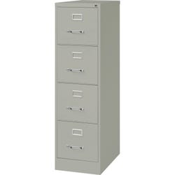 Lorell Commercial-Grade Vertical File with lock features a heavy-gauge steel construction with recycled content and contains steel ball bearings for smoother operation. File contains four high-sided drawers that accommodate hanging file folders and the slide suspension enables optimum drawer extension. The fully loaded drawers facilitate convenient usage and the adjustable wire followers keep the files upright. It comes with a core-removable lock for security, aluminum label holders for easy referencing and convenient pull handles. 15 W x 26-1/2 D x 52 H inches. Light Gray. Meets or exceeds ANSI or BIFMA industry standards.Features