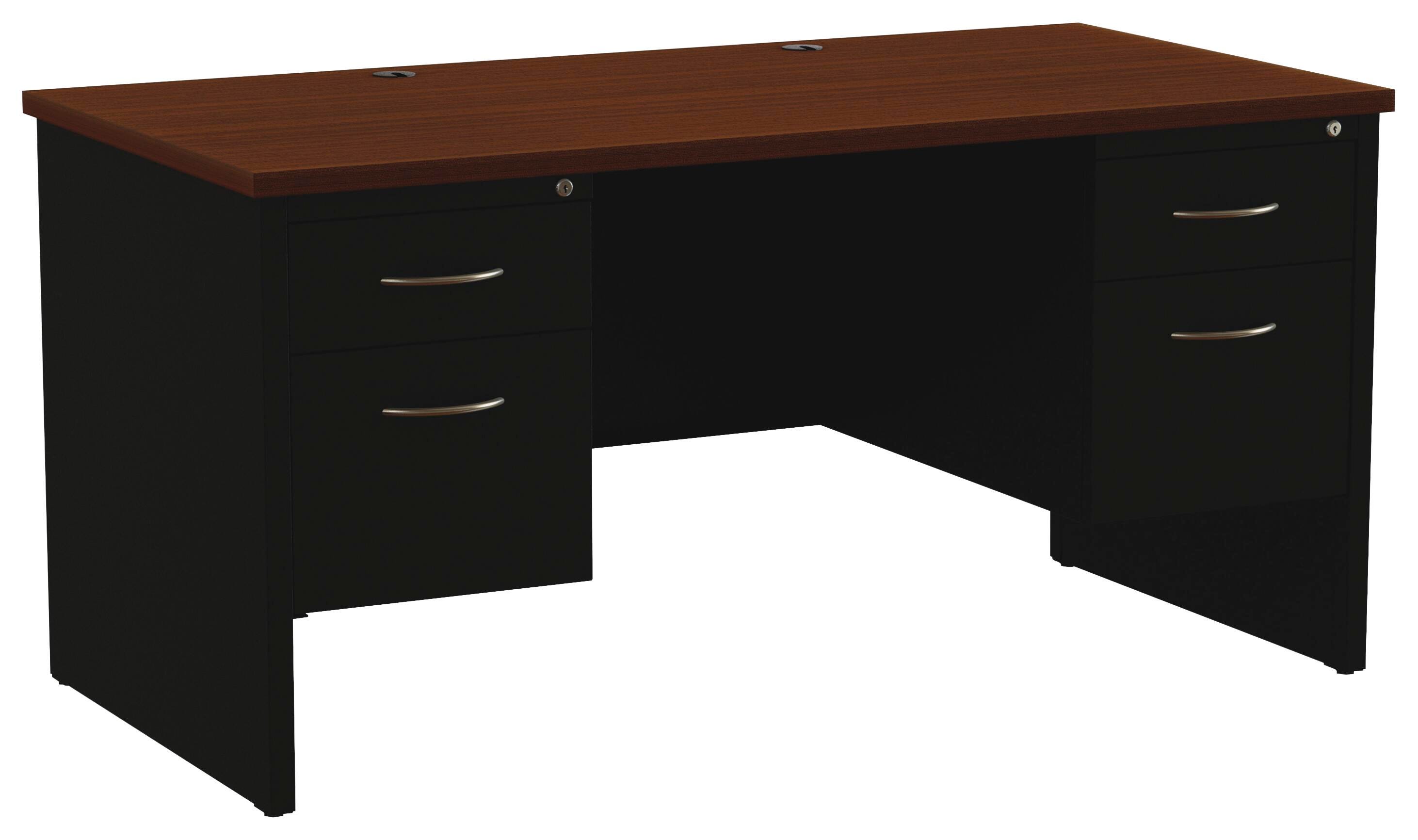 Lorell Walnut Laminate Top/Black Modular Desking, Double Pedestal Desk, 60 x 30 Inches, Walnut/Black