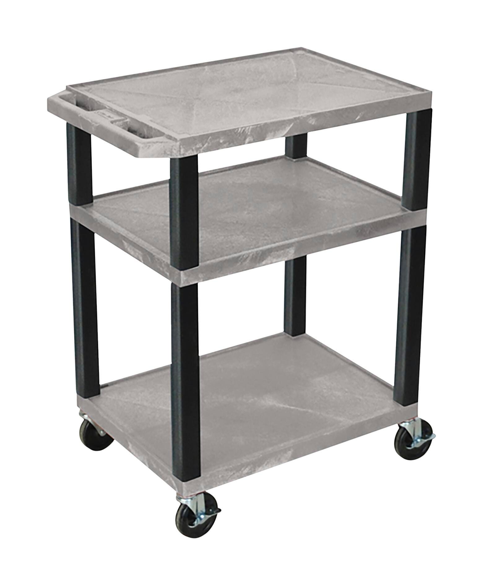 Luxor 3-Shelf Tuffy Cart With Power, Gray Shelves, Black Legs, 24 x 18 x 34 Inches