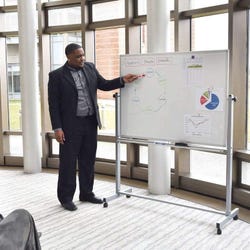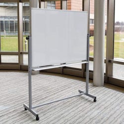 Create a space to collaborate with a double-sided whiteboard that's made to move. This mobile magnetic whiteboard is perfect for classrooms and office spaces.