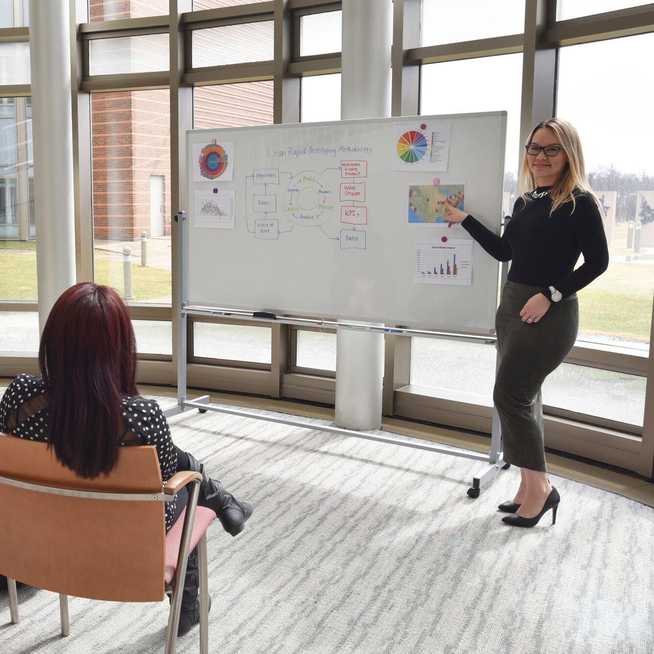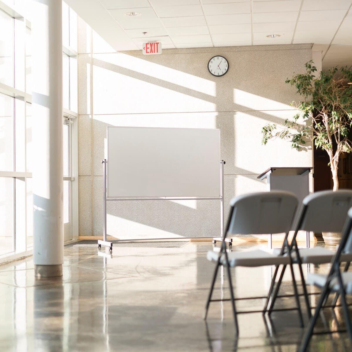 The perfect ideation station lies in a reversible, magnetic whiteboard made to move. Find your classroom collaboration solution in the Luxor Double-Sided Magnetic Whiteboard!