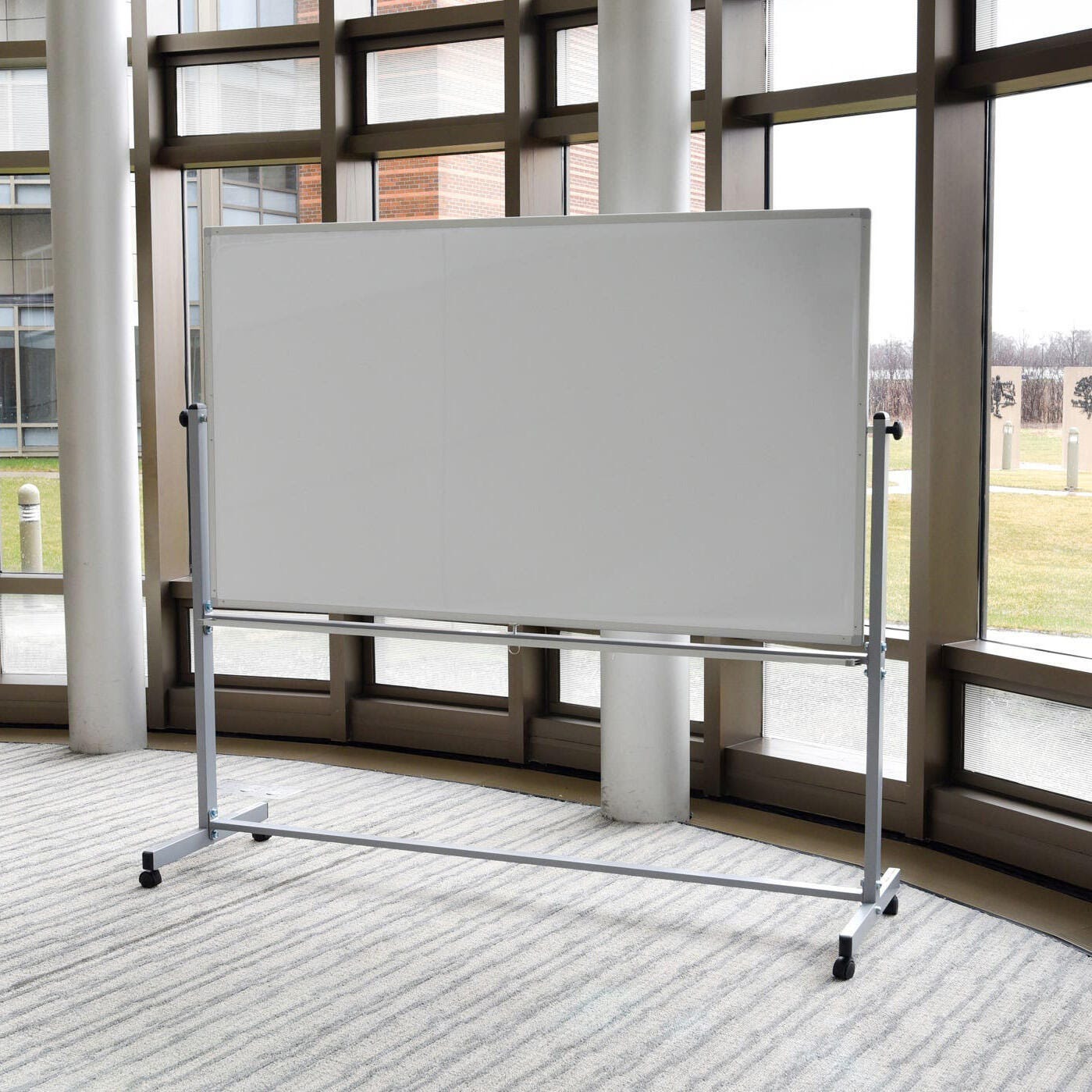 Luxor Double-Sided Magnetic Whiteboard is the perfect collaboration tool for classrooms and offices alike. Both sides of the reversible whiteboard are magnetic and made of painted steel with an aluminum frame. The rolling whiteboard features four casters, two with locking brakes, for easy maneuverability and stability. Marker/eraser tray included. Assembly required. Measures 74-1/2 W x 23 D x 69 H inches with frame. Writing surface measures 72 W x 40 H inches.Features