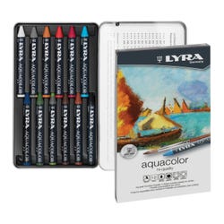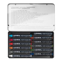 Lyra Aquacolor Crayon Water soluble crayons are water soluble and easy to blend allowing an almost unlimited range of shades. Non-Toxic colors gives brilliant shades and high light fastness with high pigmentation and are packed in a reusable metal tin. It is sold as set as 12 per pack.Features