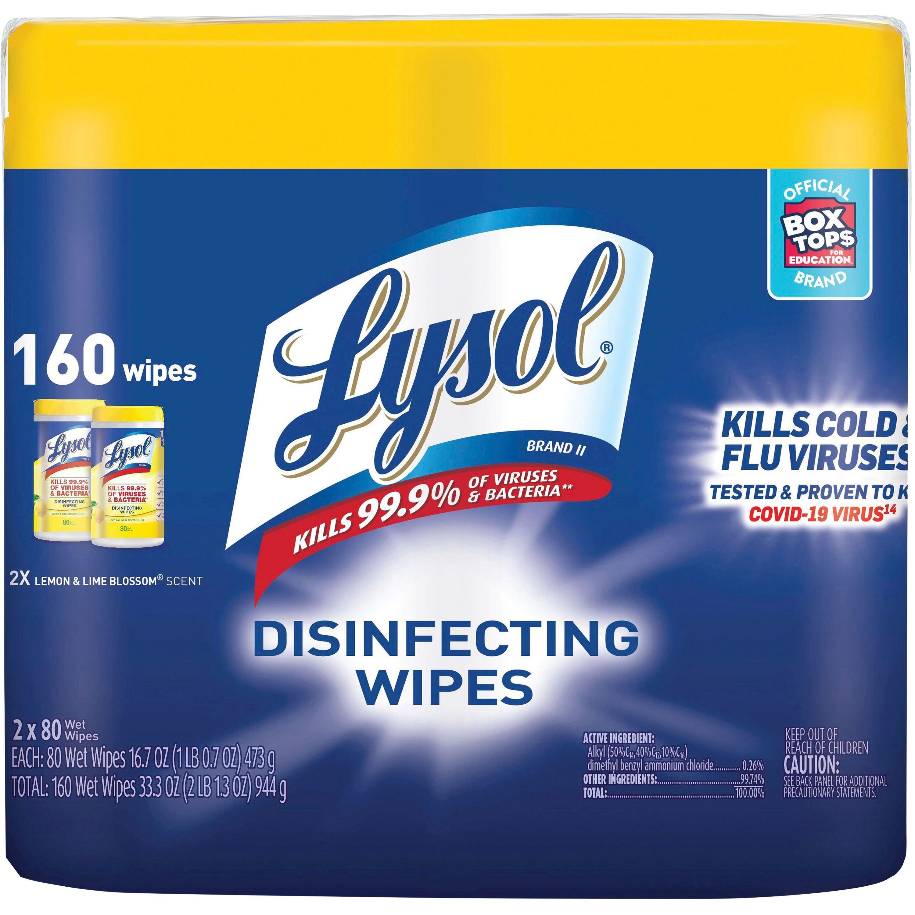 Lysol Disinfecting Wipes, Lemon Lime, Pack of 2 with 80 Sheets Each