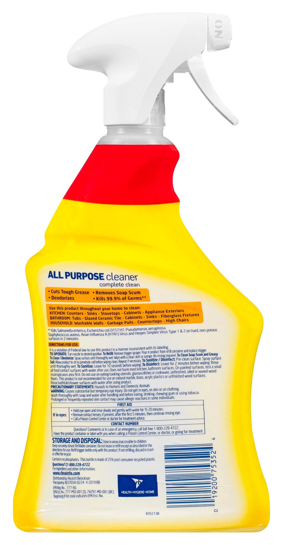 Clean and sanitize your kitchen, bathroom classroom or office with this Lysol Multi-Purpose Disinfectant Cleaner.