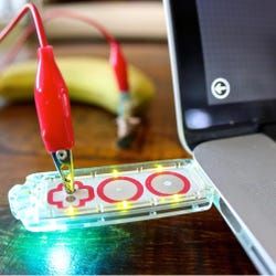 The Makey Makey GO delivers a realm of technological possibilities in a compact, easily portable device. Designed to give creators and makers the ability to invent anywhere, it's small enough to fit on a keychain or right in your pocket. With the snap of an aligator clip, STEM enthusiasts of any level can transform ordinary objects into computer touchpads. This versatile and educational device is a perfect way to introduce young learners to the exciting realm of STEM. Recommended for ages 8 and up.Features