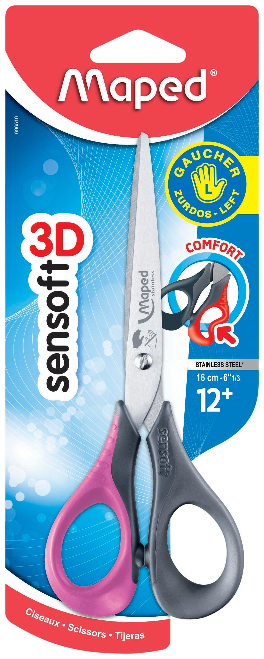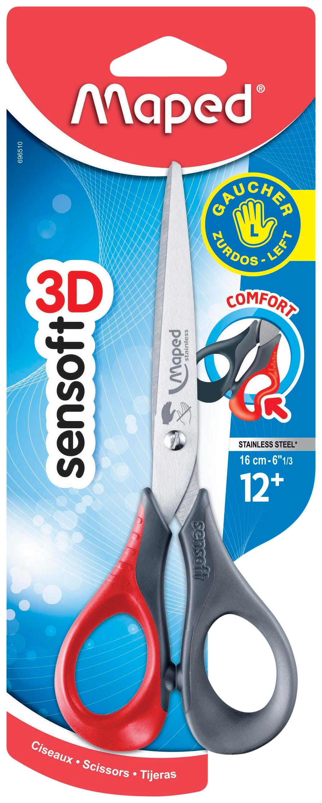 Maped 3D Sensoft Left Handed Scissors, 6-1/3 Inches, Pointed