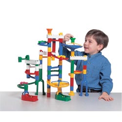 Create your own marble run with flippers, funnels, ramps, and hoppers. This colorful, creative building set is perfect for ages 4 and up.