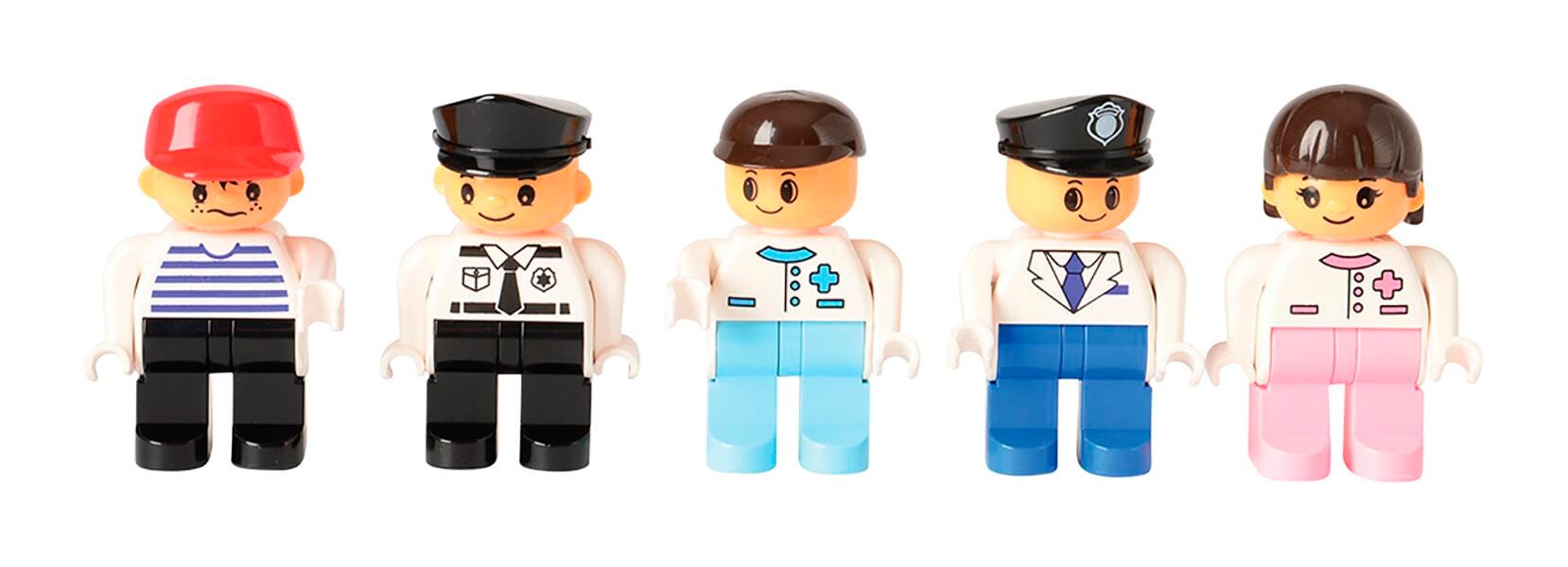 Extend the building block fun with these career-themed building brick figures by Marvel Education! The set includes 20 posable career figures that interlock with most preschool-sized building bricks. The perfect creative play option for children developing their social learning skills in any early learning space. Each figure measures 2-1/2 H inches. Designed for ages 3 and up. To note, these blocks contain small parts, meaning there is a choking hazard for children younger than 3.Features