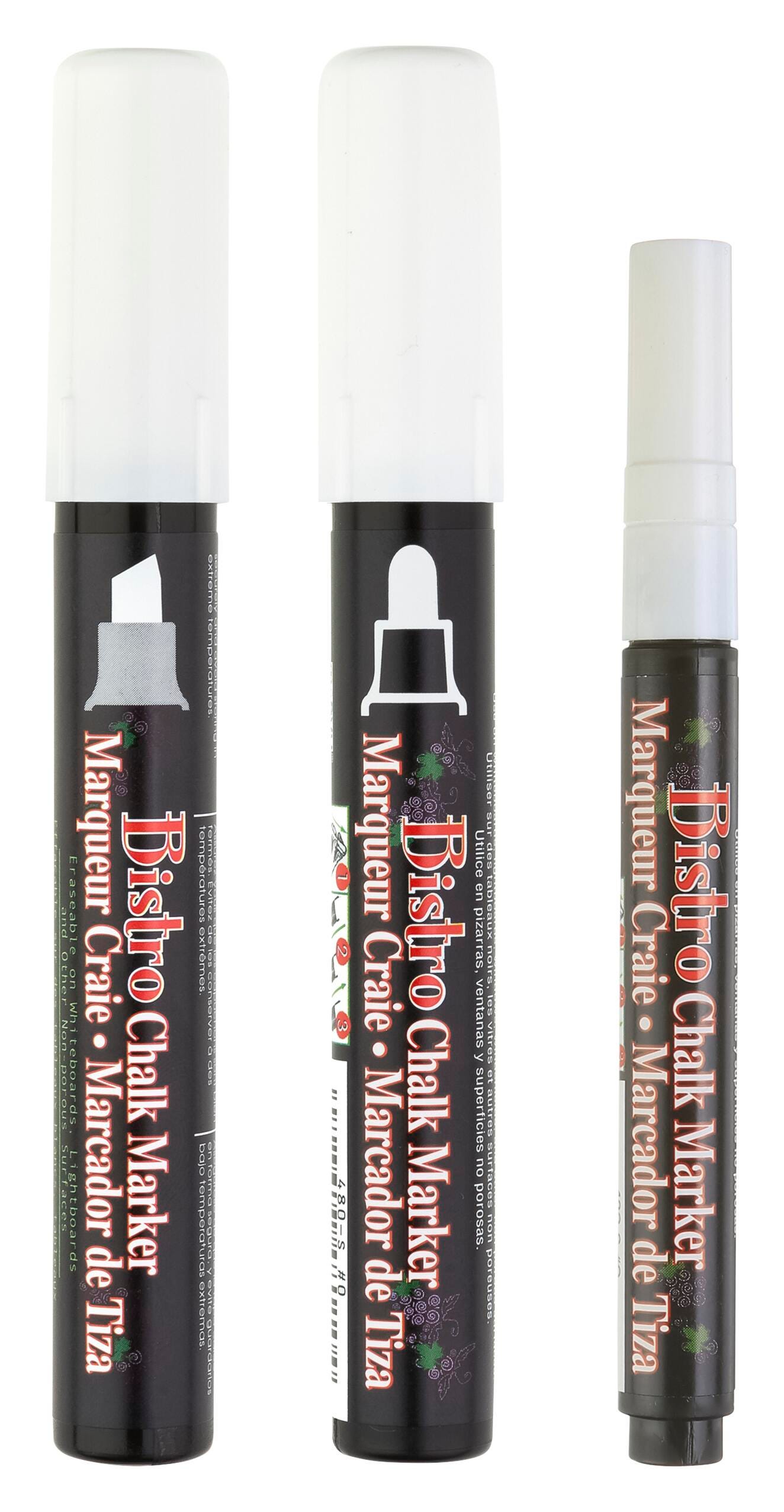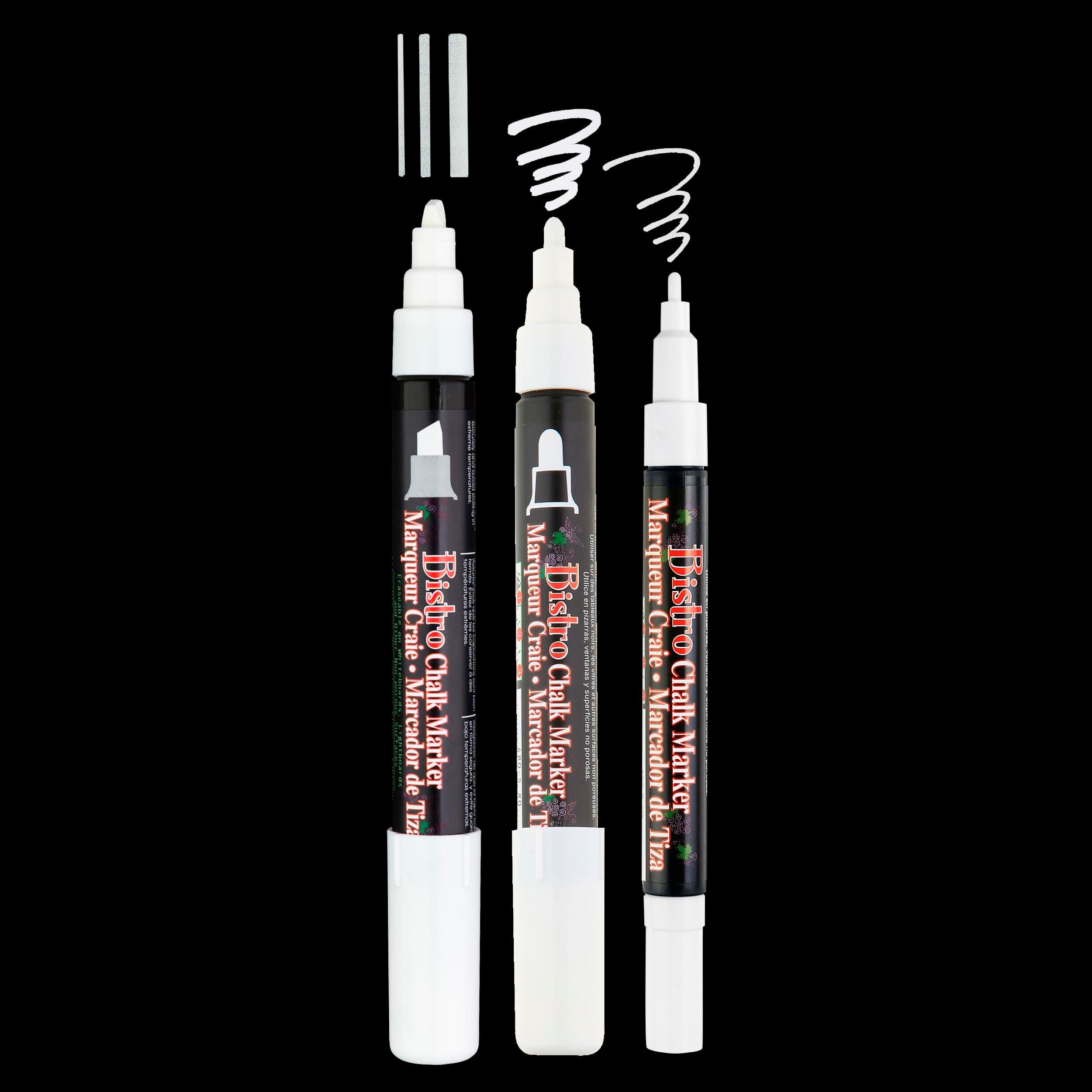 Marvy Bistro Chalk Markers, Assorted Tips, White, Set of 3