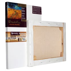 Masterpiece Vincent MasterWrap Stretched Canvas measuring 8 in x 10 in features a tongue and groove brace system. Three times acrylic-primed canvas has clean staple-free edges perfect for a frameless display and can be re-stretched using the same size frame with the help of folded, uncut corners. Precision machined, kiln-dried keyable bars are milled and the back-staple stretching method offers balanced tension across the canvas surface. Stretcher bar with 7/8 in depth yields a full 5/16 in relief to the canvas, avoiding brush strokes from creating impressions.Features