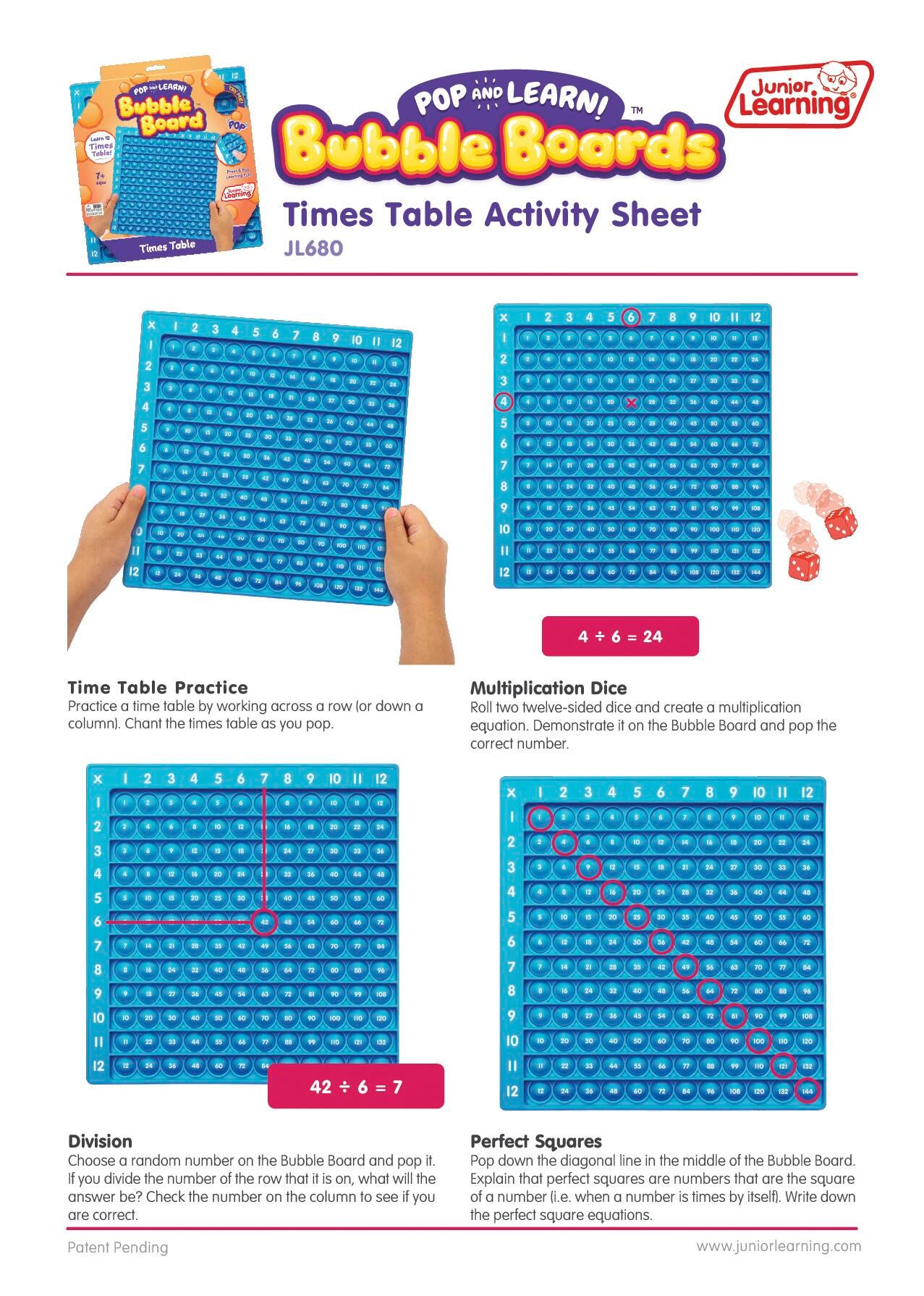 Junior Learning Bubble Board Multiplication Times Tables to 12, Grades 2 to 6