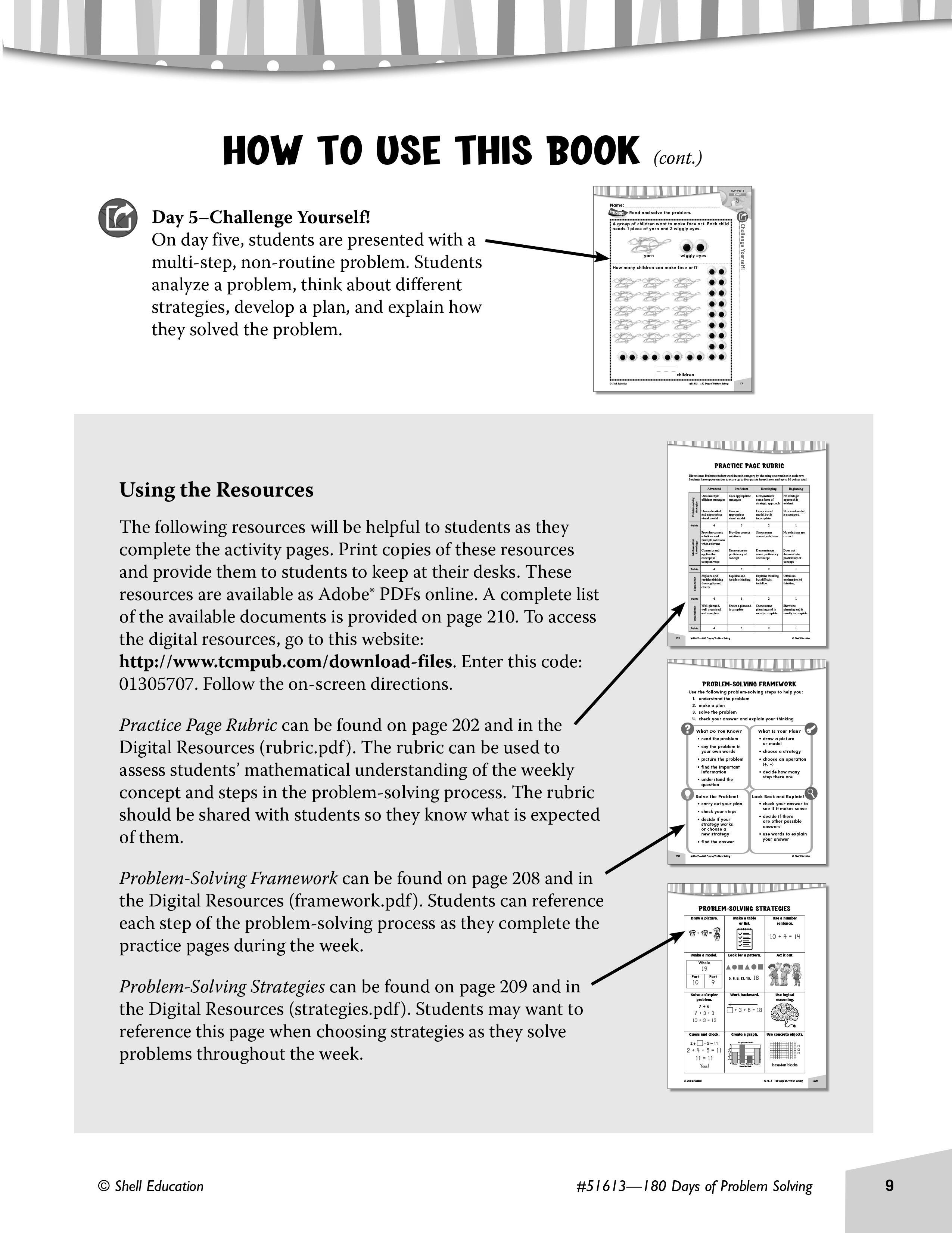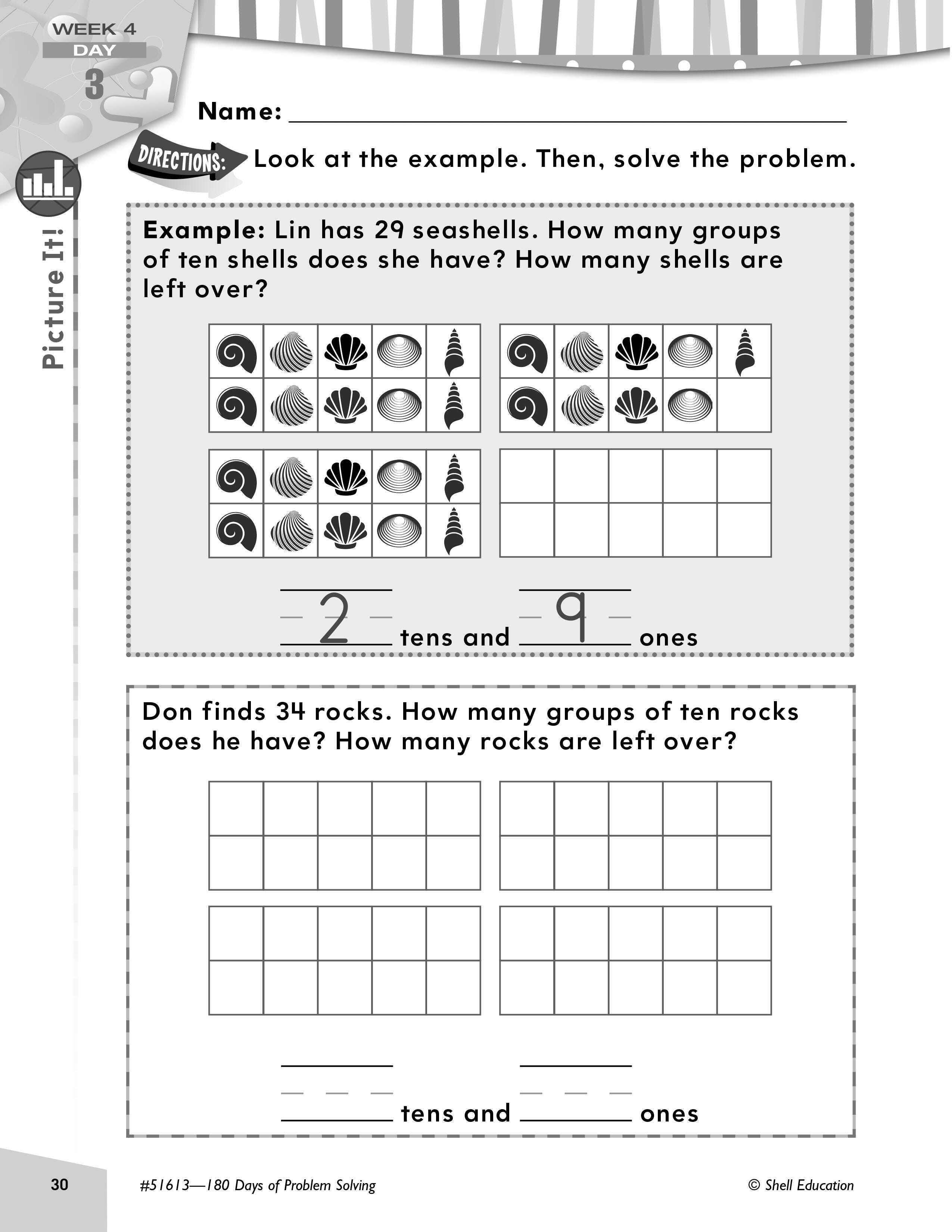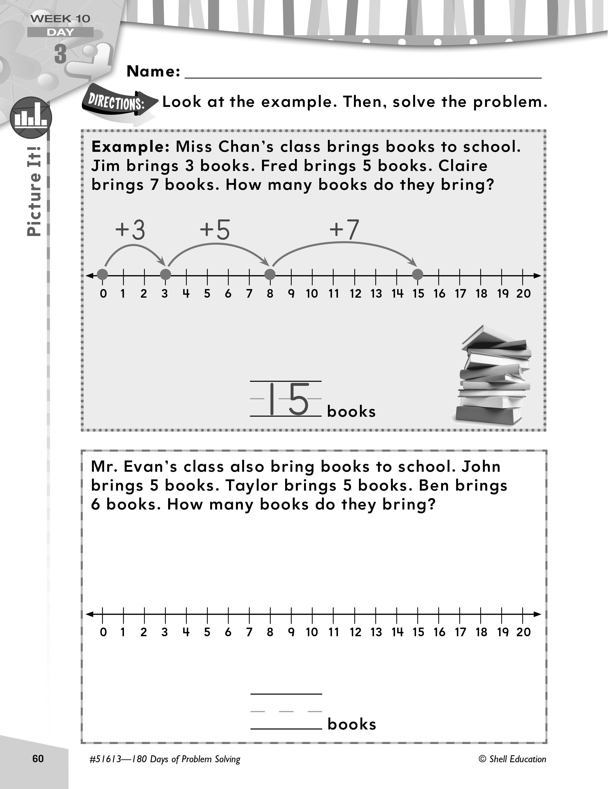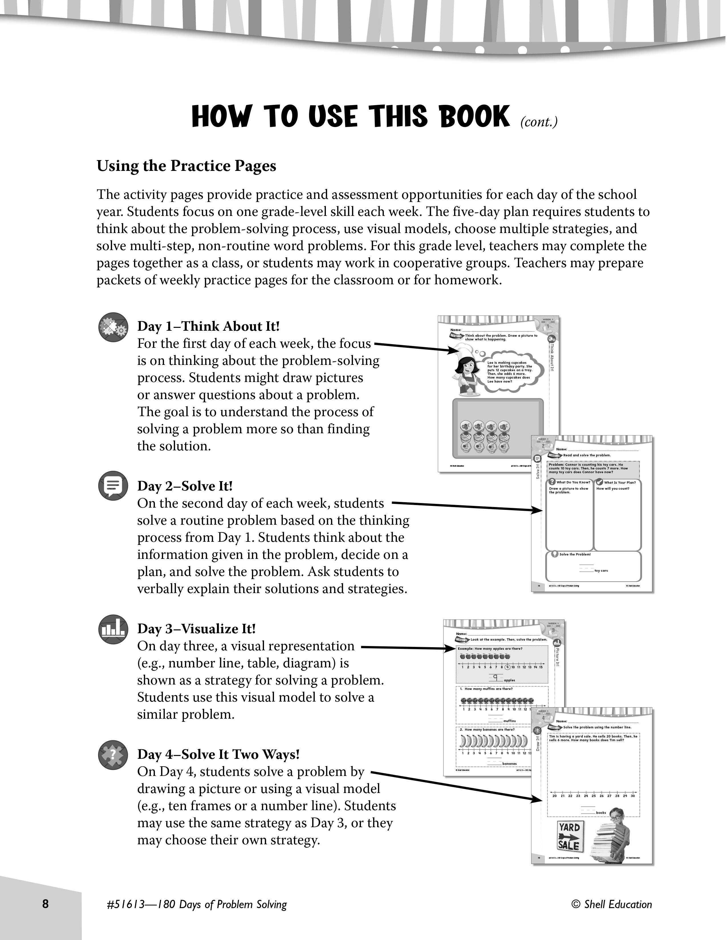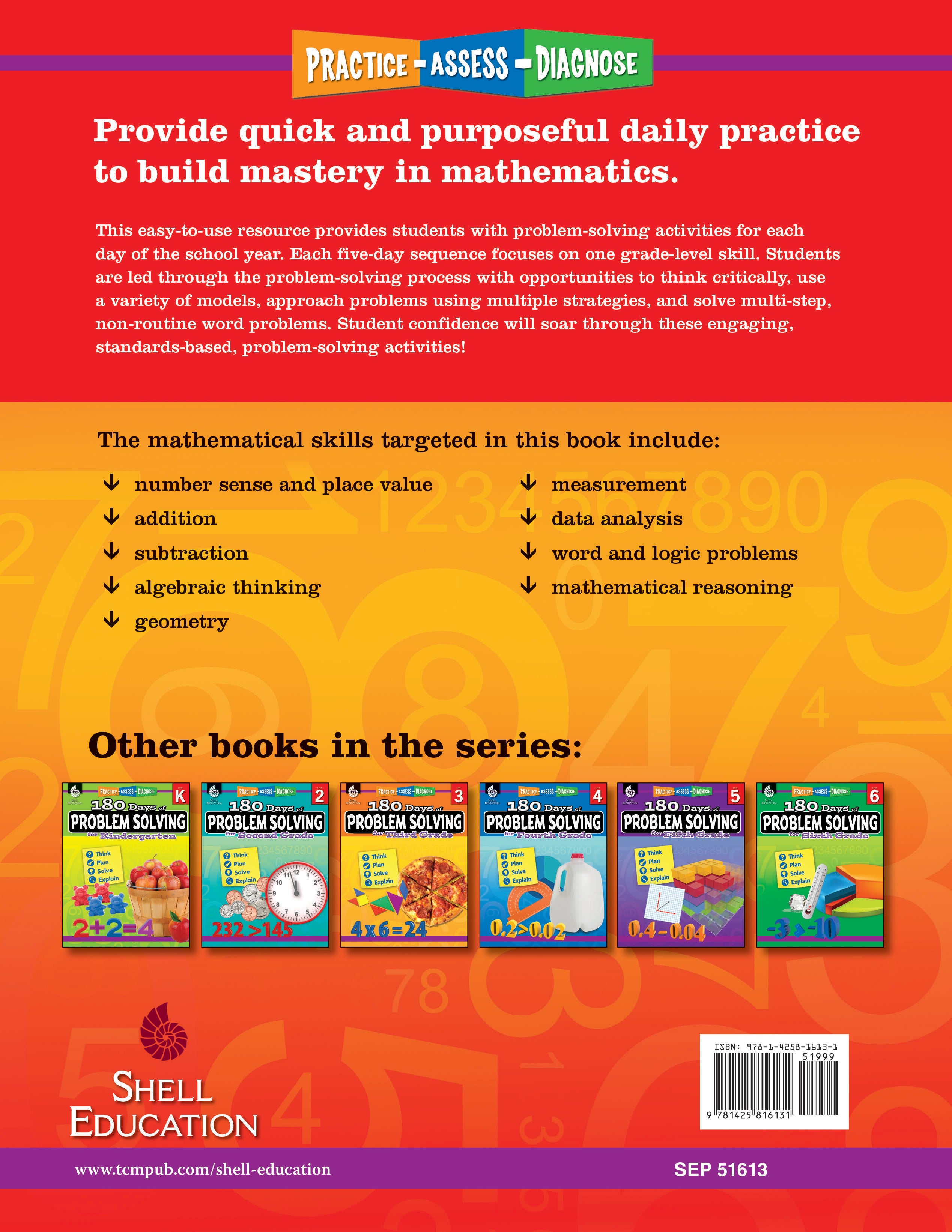 180 Days™ of Problem Solving is a fun and effective daily practice workbook designed to help first-grade students improve critical-thinking and reasoning skills. The engaging standards-based activities cover grade-level skills with easy-to-follow instructions and an answer key to quickly assess student understanding. Students will focus on one skill each week to learn the problem-solving process, use visual models, and solve multi-step, non-routine word problems. Watch as students build problem-solving skills with these quick independent learning activities.