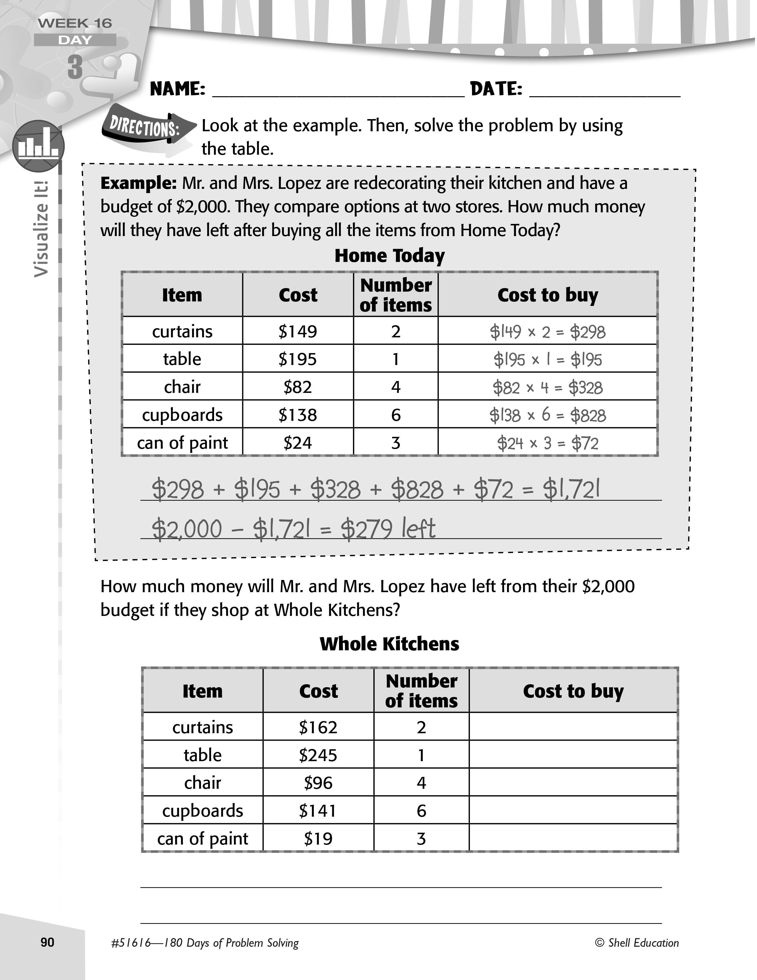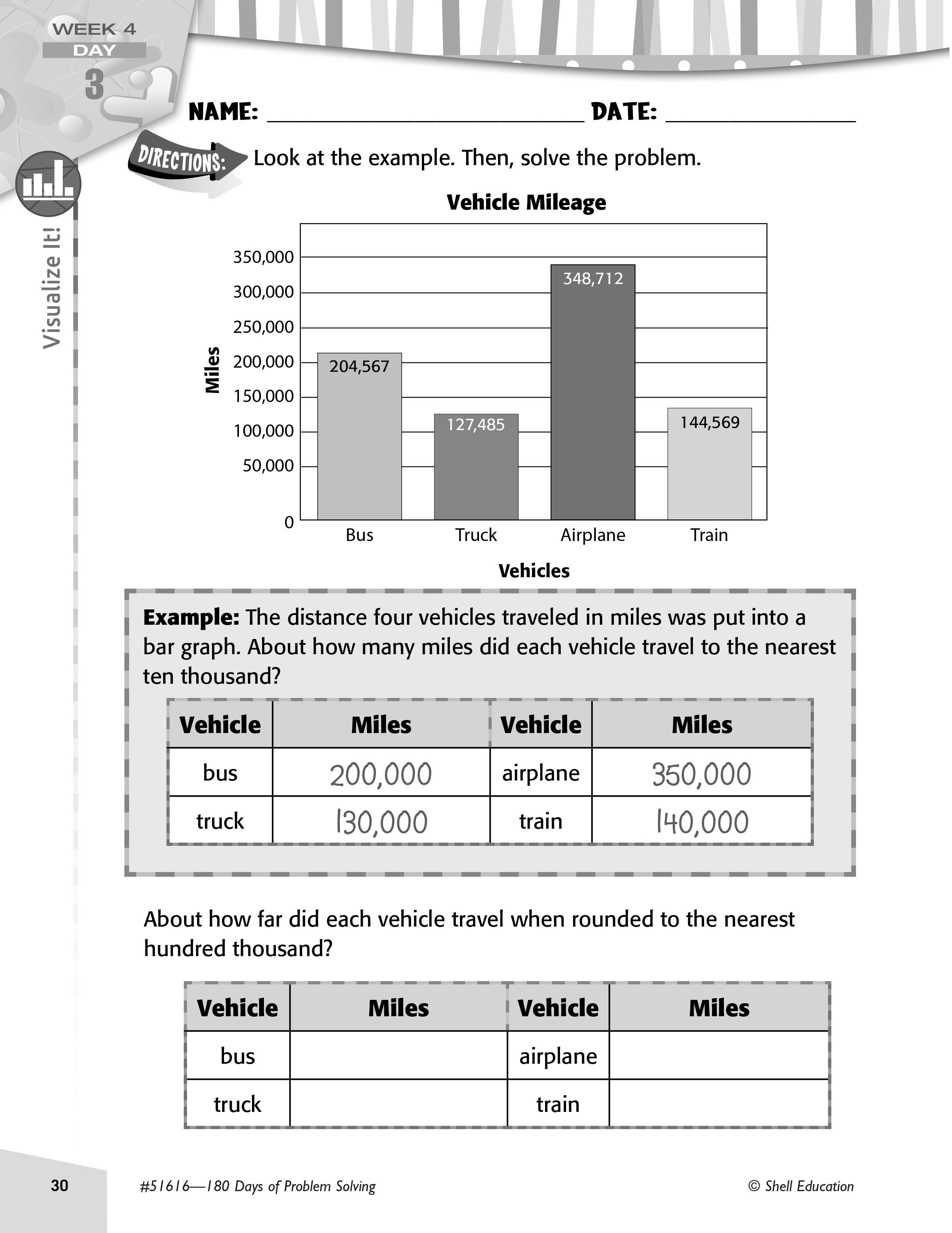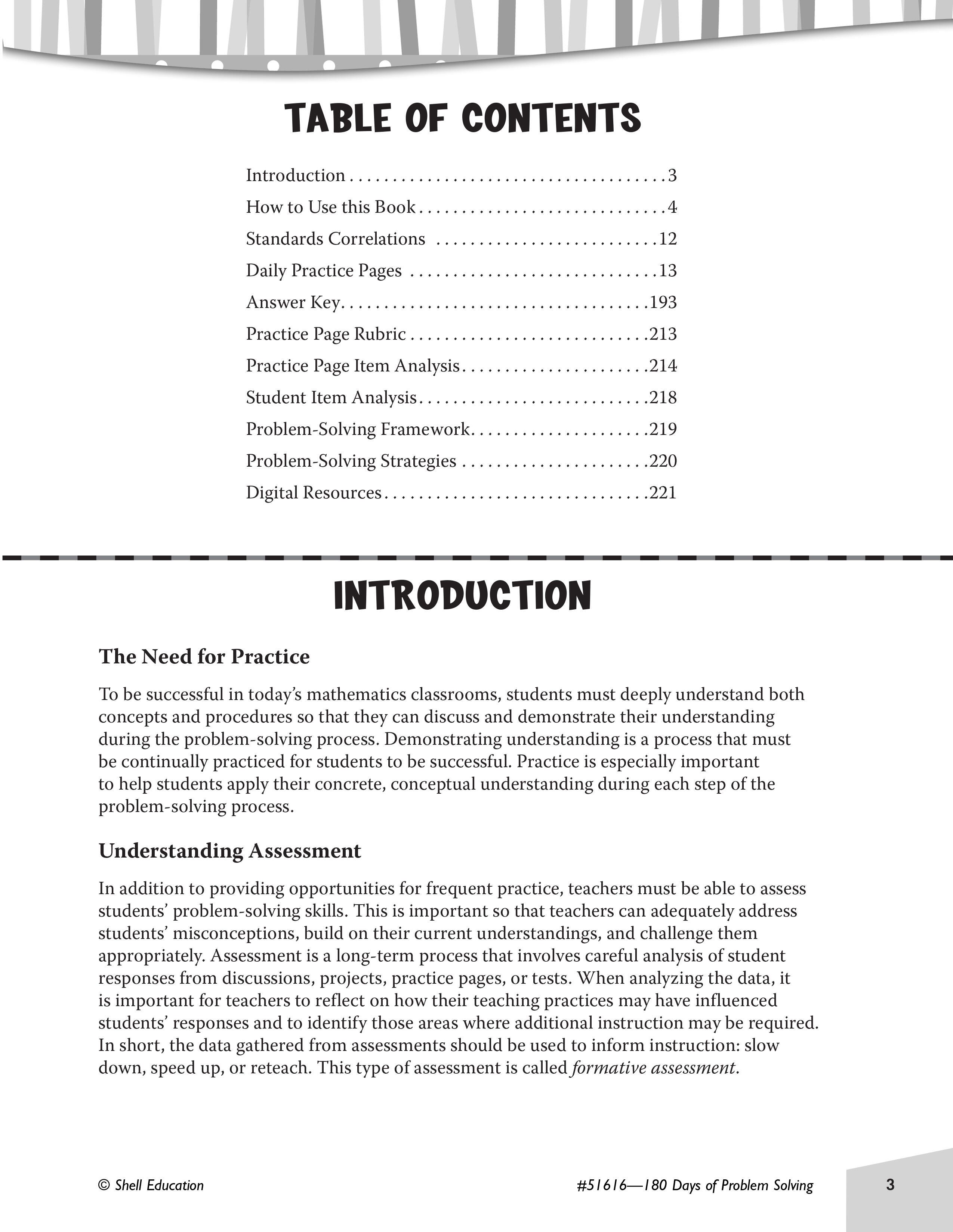 180 Days™ of Problem Solving is a fun and effective daily practice workbook designed to help fourth-grade students improve critical-thinking and reasoning skills. The engaging standards-based activities cover grade-level skills with easy-to-follow instructions and an answer key to quickly assess student understanding. Students will focus on one skill each week to learn the problem-solving process, use visual models, and solve multi-step, non-routine word problems. Watch as students build problem-solving skills with these quick independent learning activities.