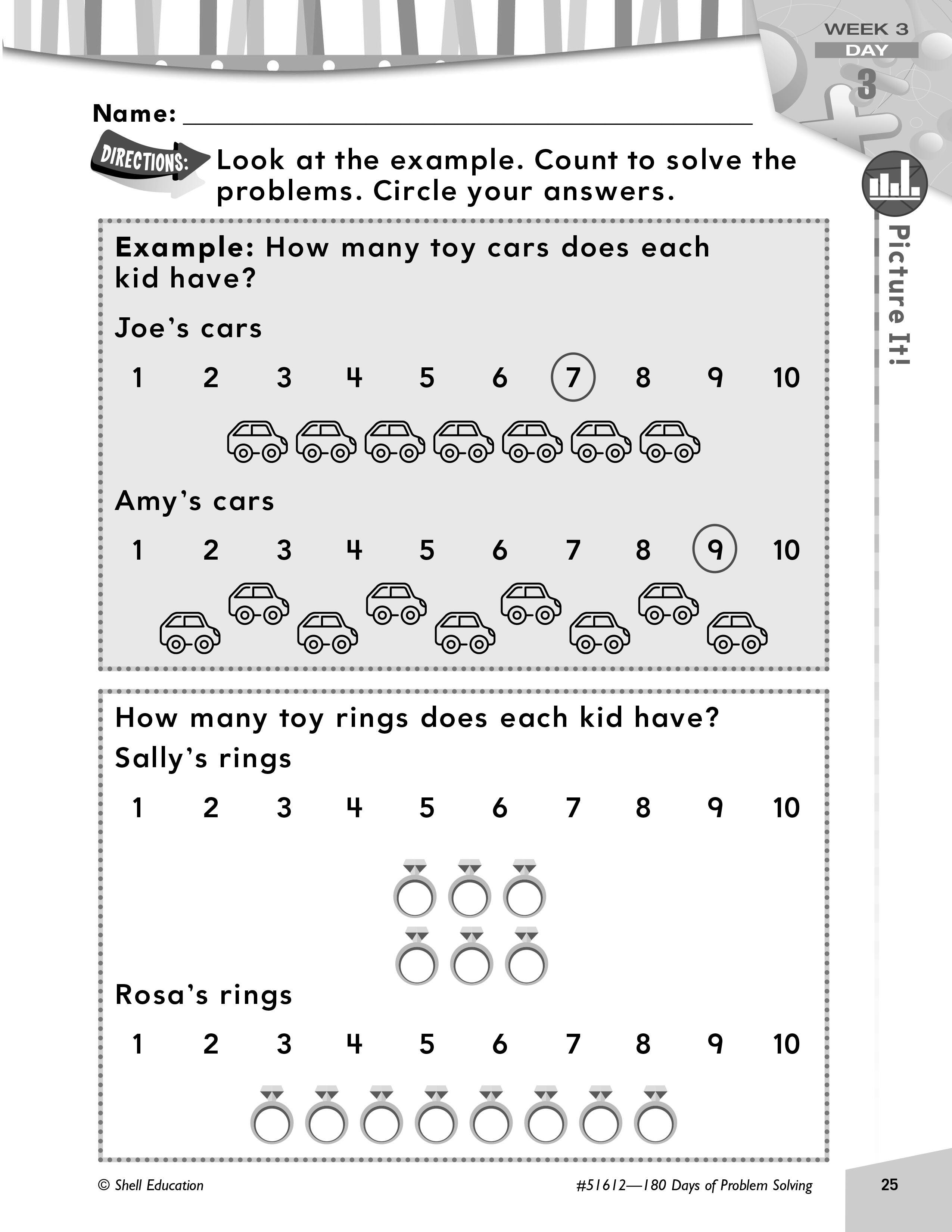Shell Education 180 Days of Problem Solving for Kindergarten