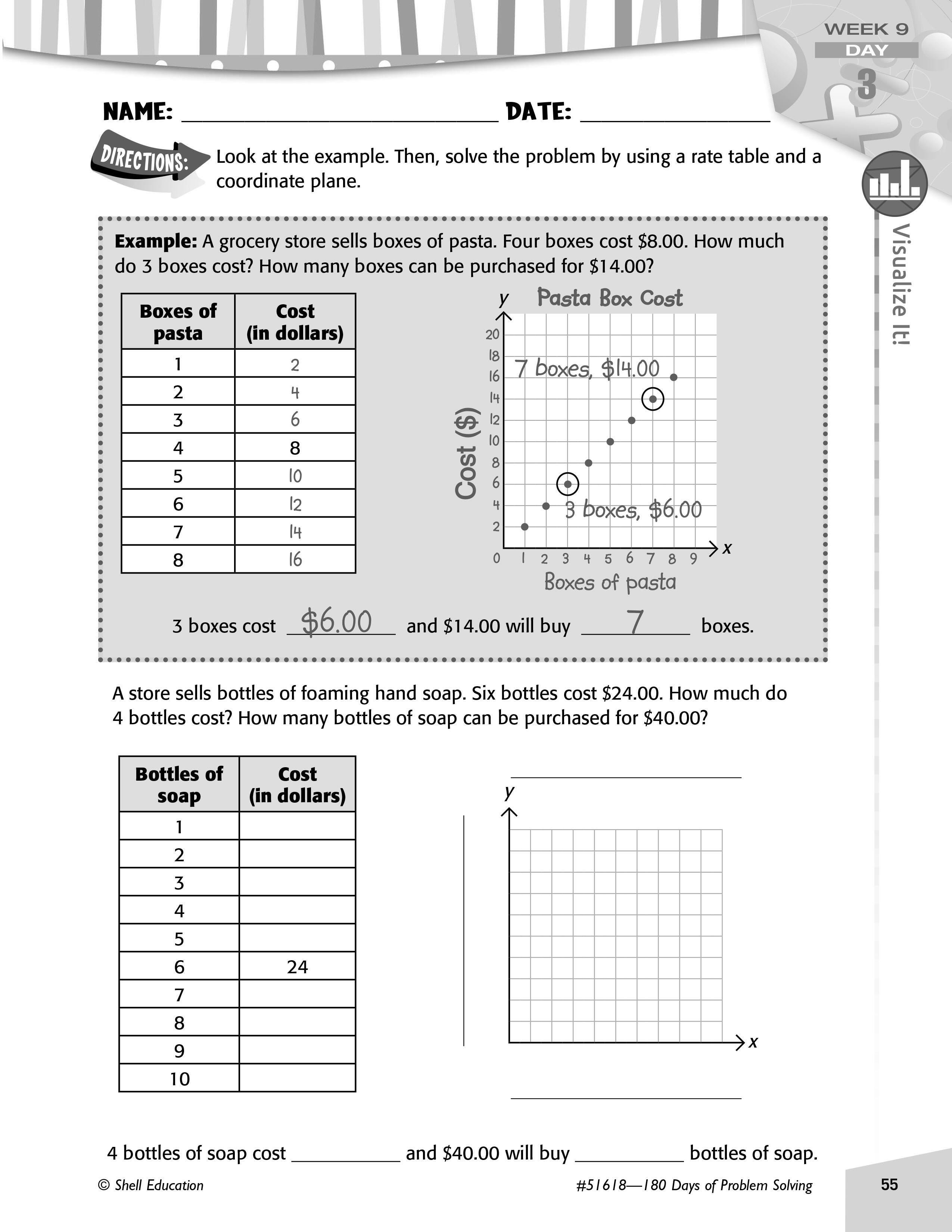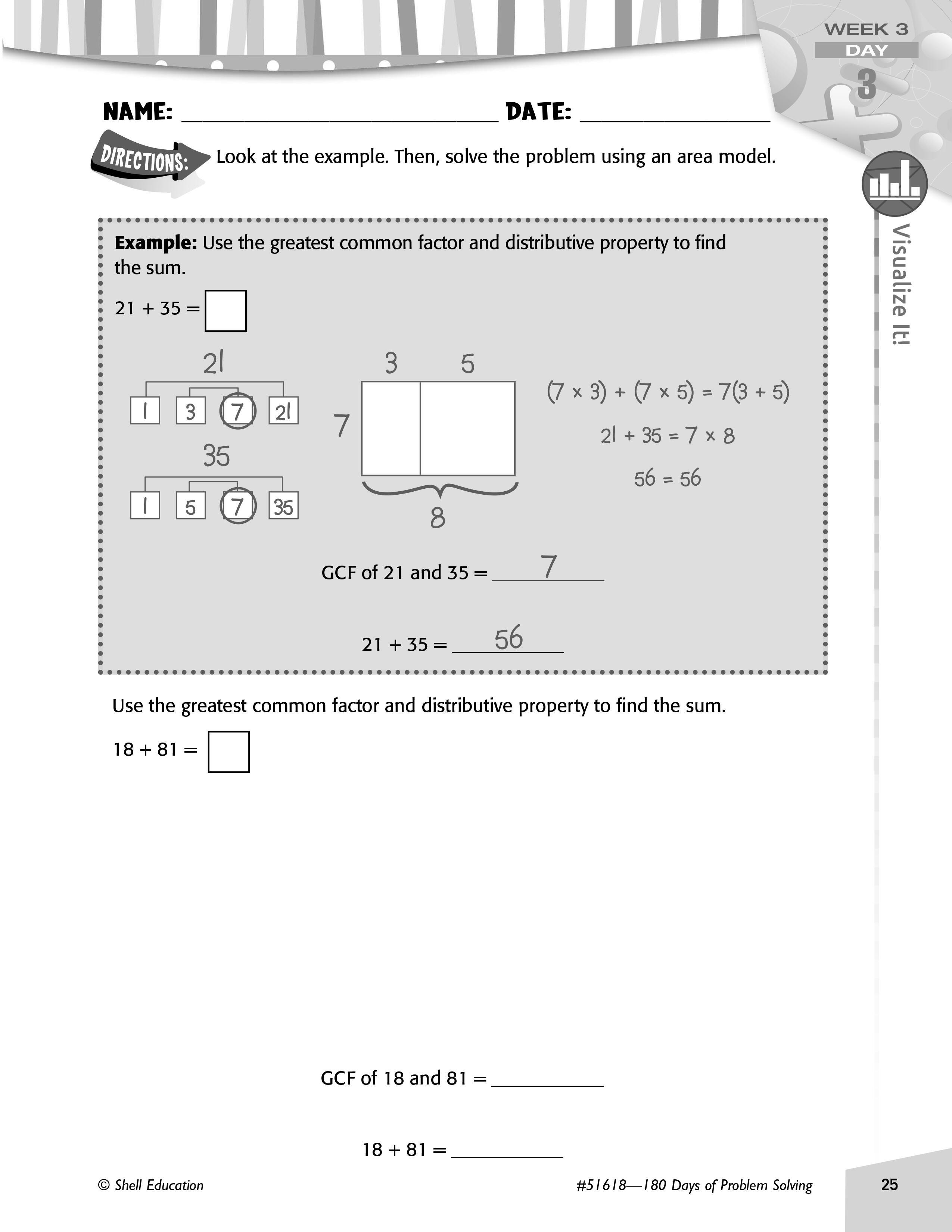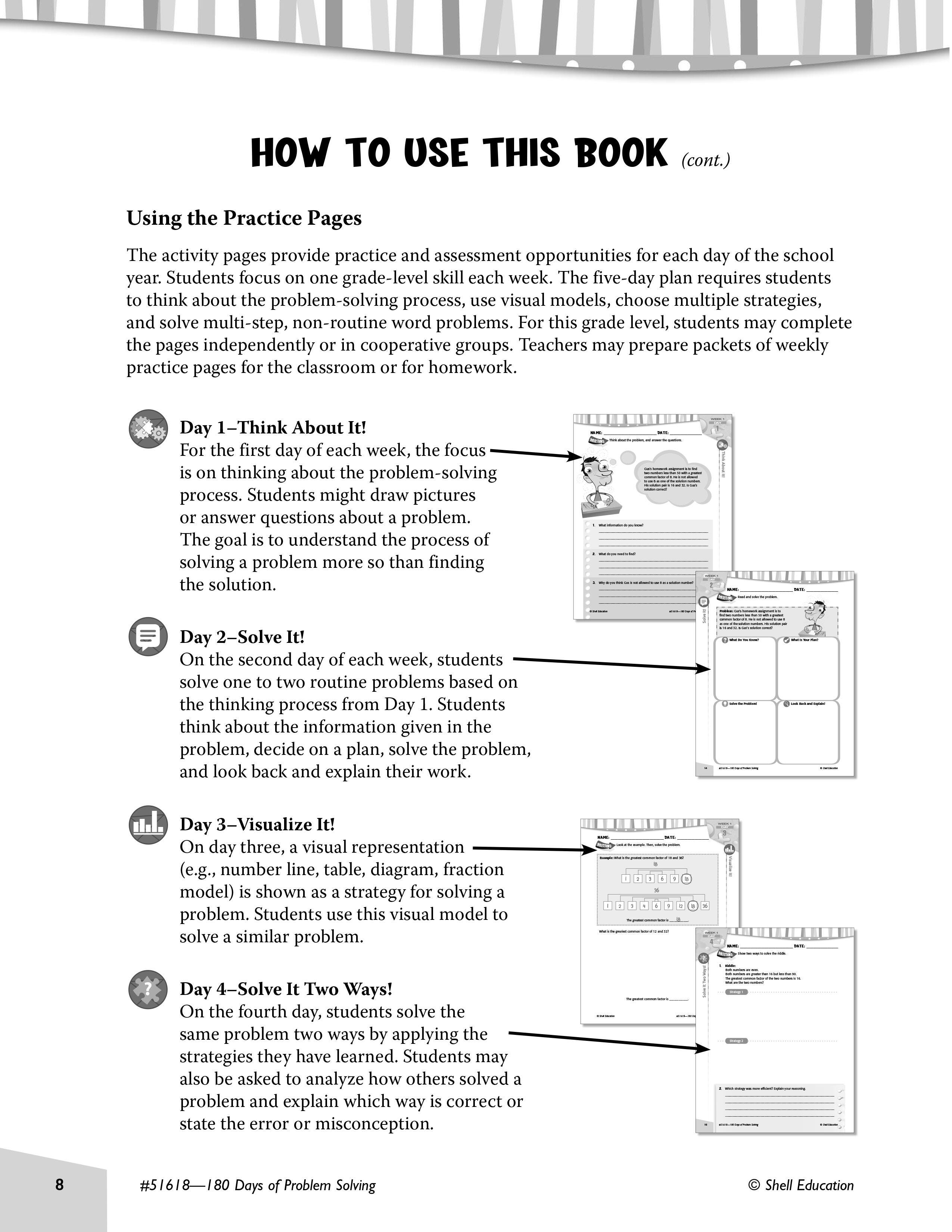 180 Days™ of Problem Solving is a fun and effective daily practice workbook designed to help sixth-grade students improve critical-thinking and reasoning skills. The engaging standards-based activities cover grade-level skills with easy-to-follow instructions and an answer key to quickly assess student understanding. Students will focus on one skill each week to learn the problem-solving process, use visual models, and solve multi-step, non-routine word problems. Watch as students build problem-solving skills with these quick independent learning activities.