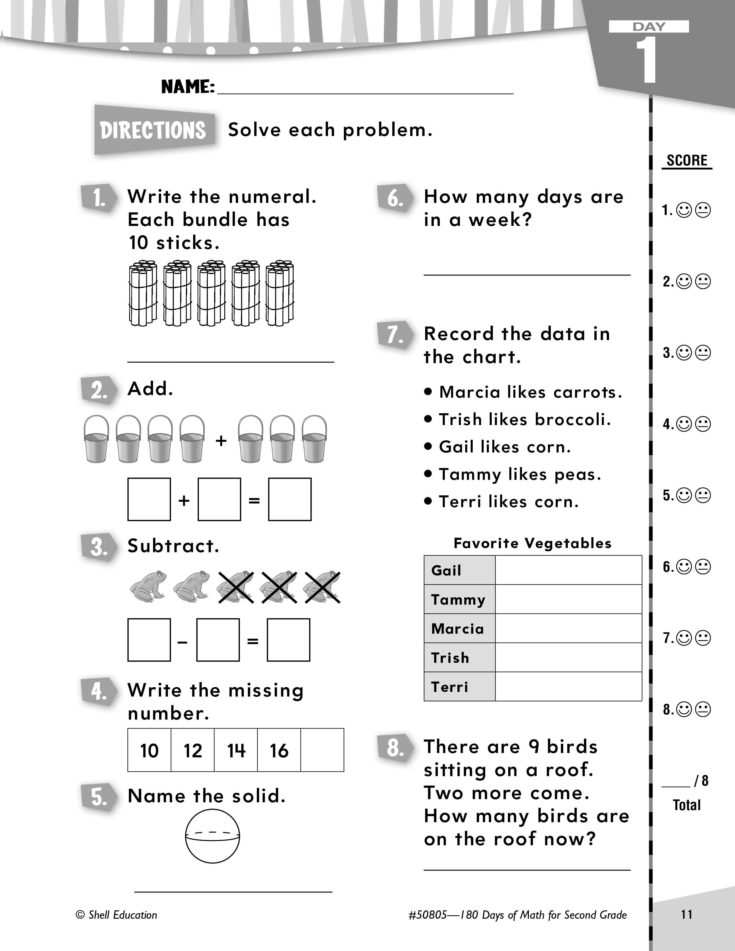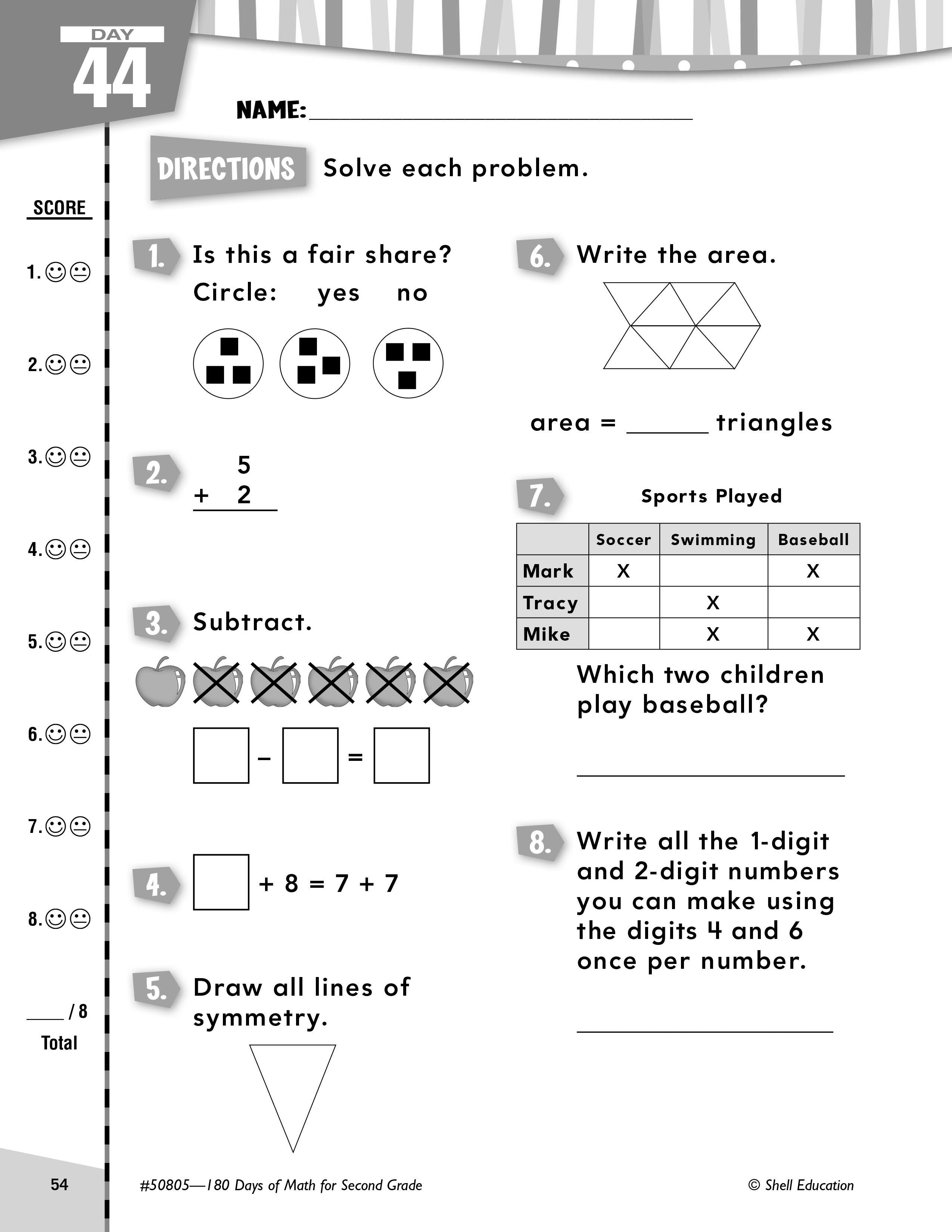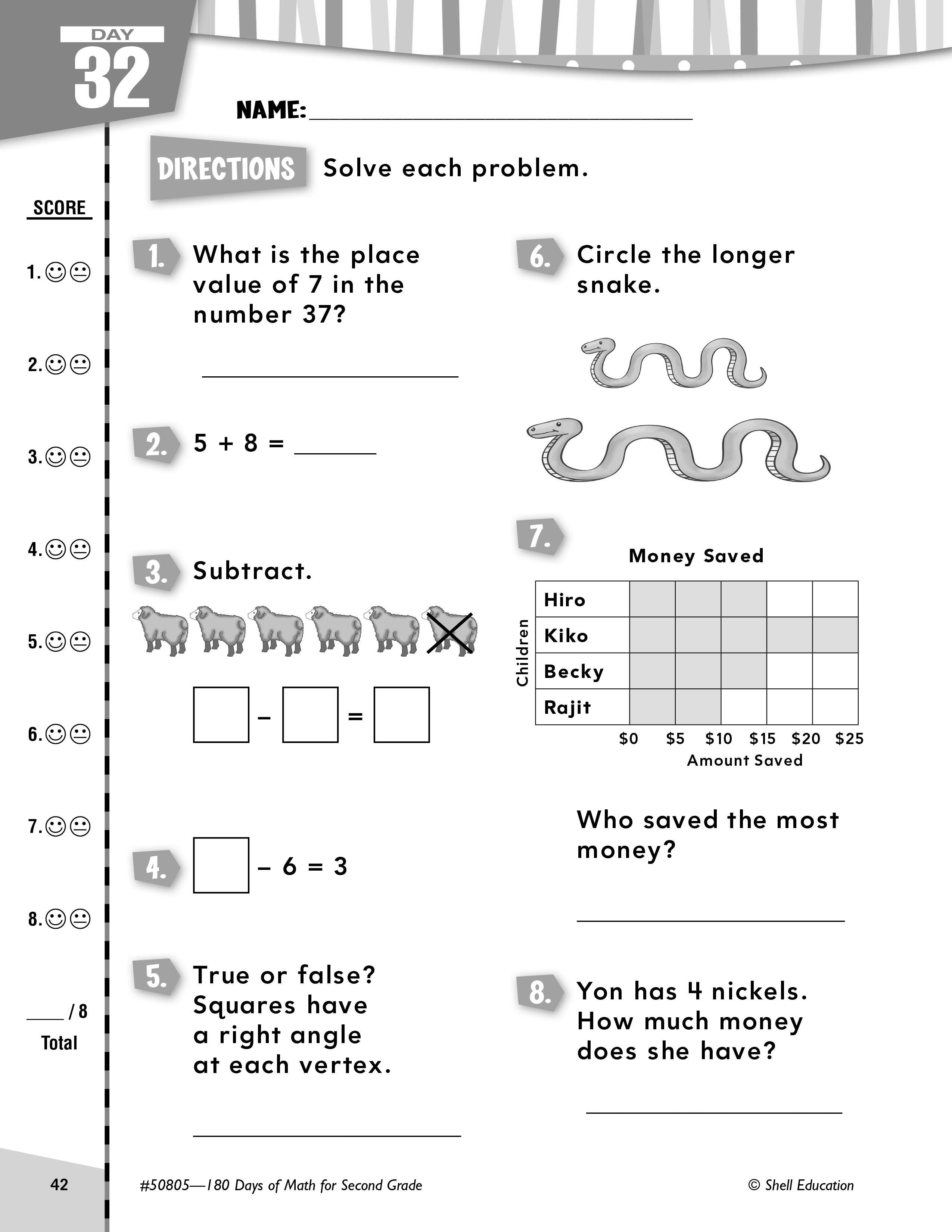 Practice, Assess, Diagnose: 180 Days of Math provides 2nd grade teachers and parents with 180 daily practice activities to build and gauge students' mathematical fluency.