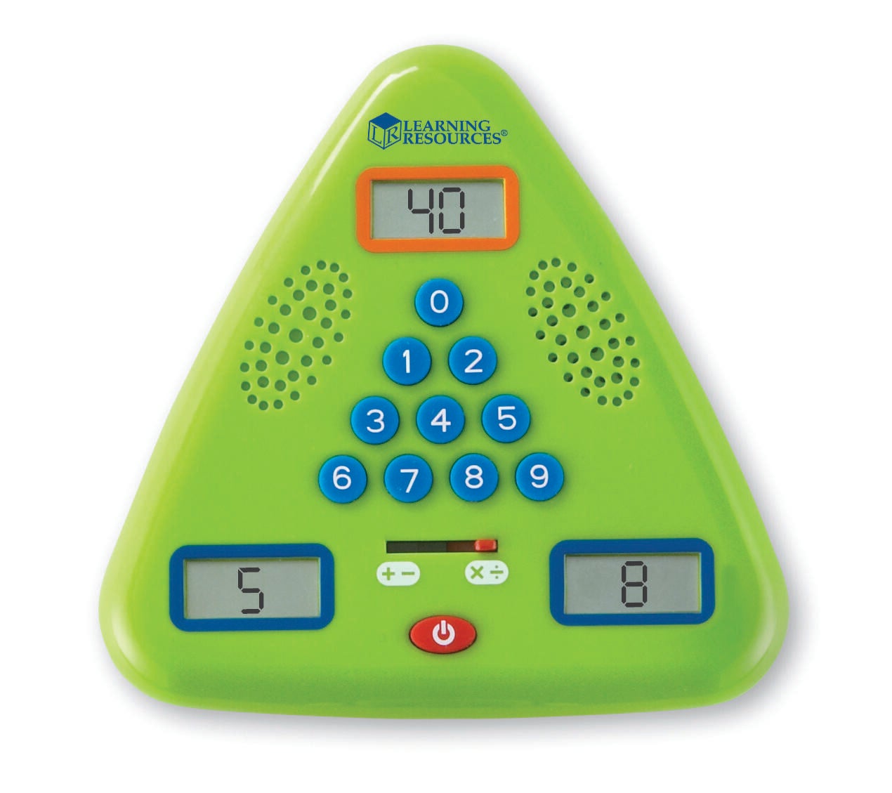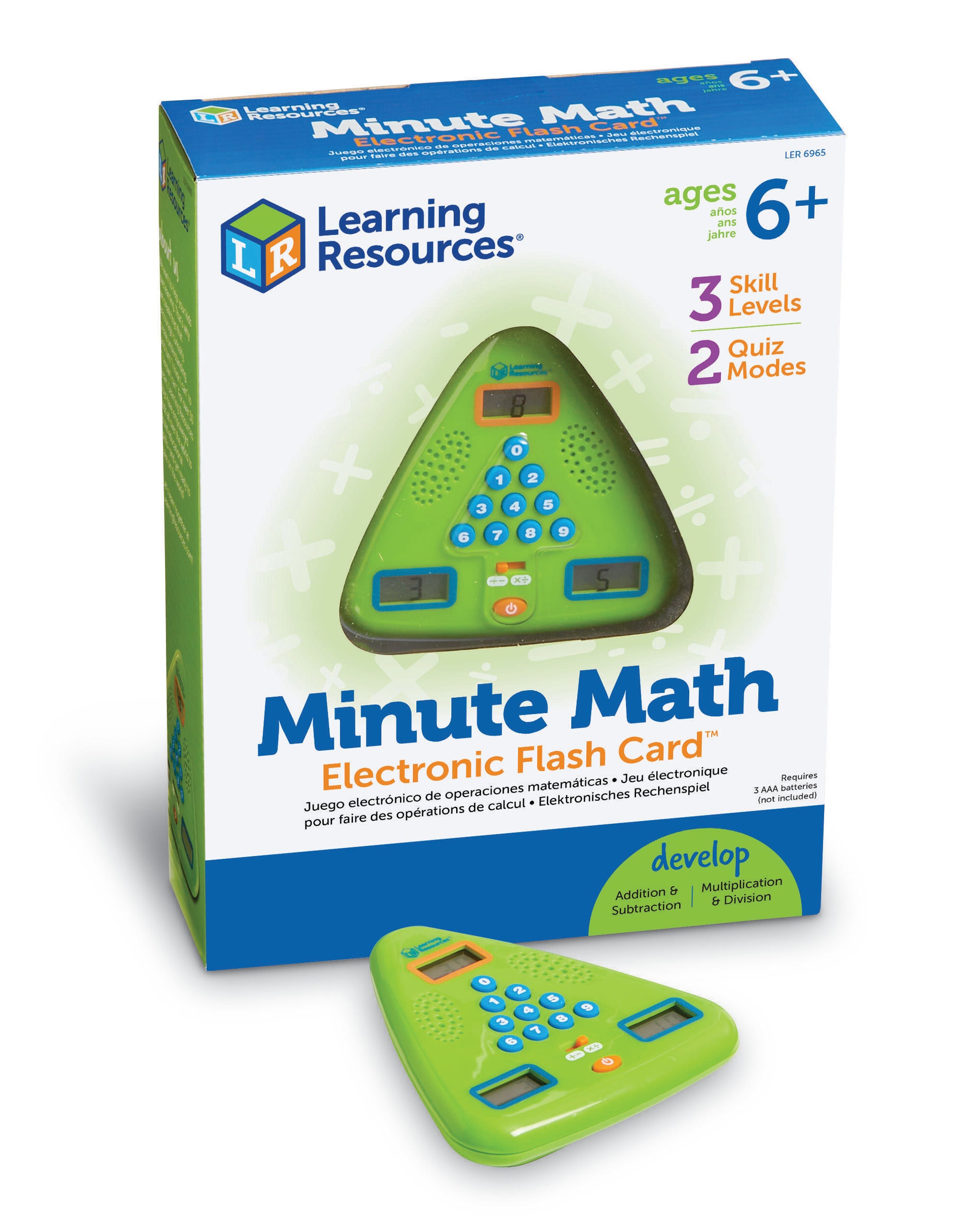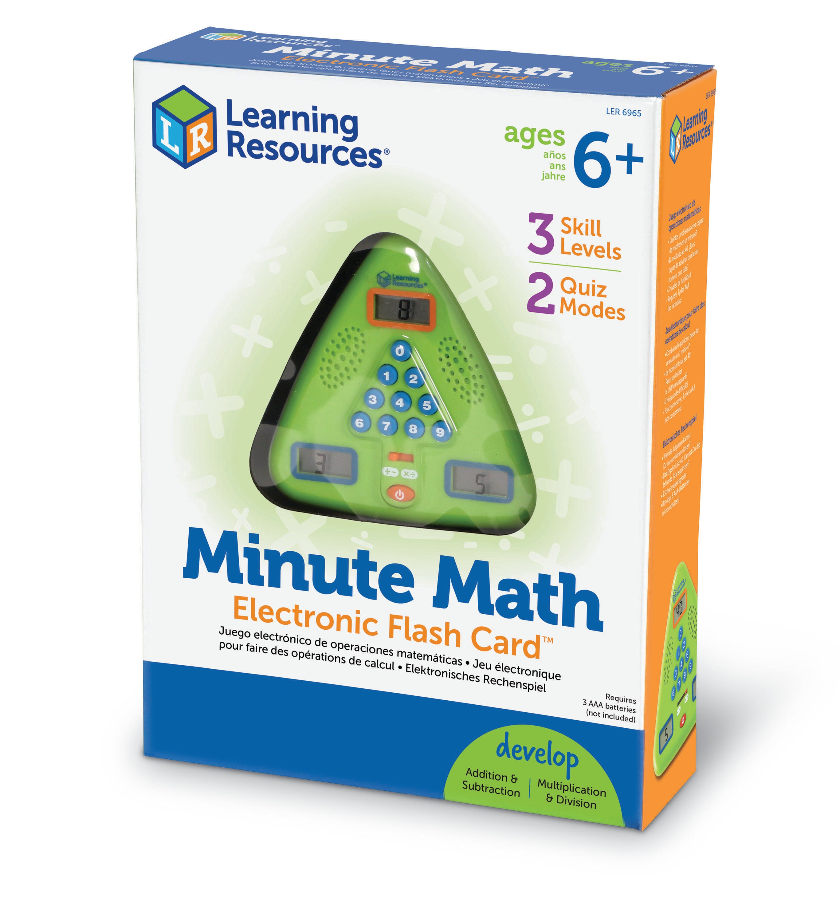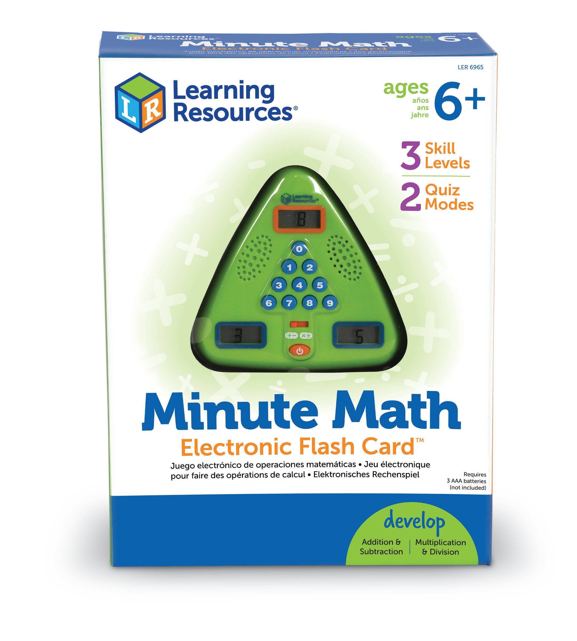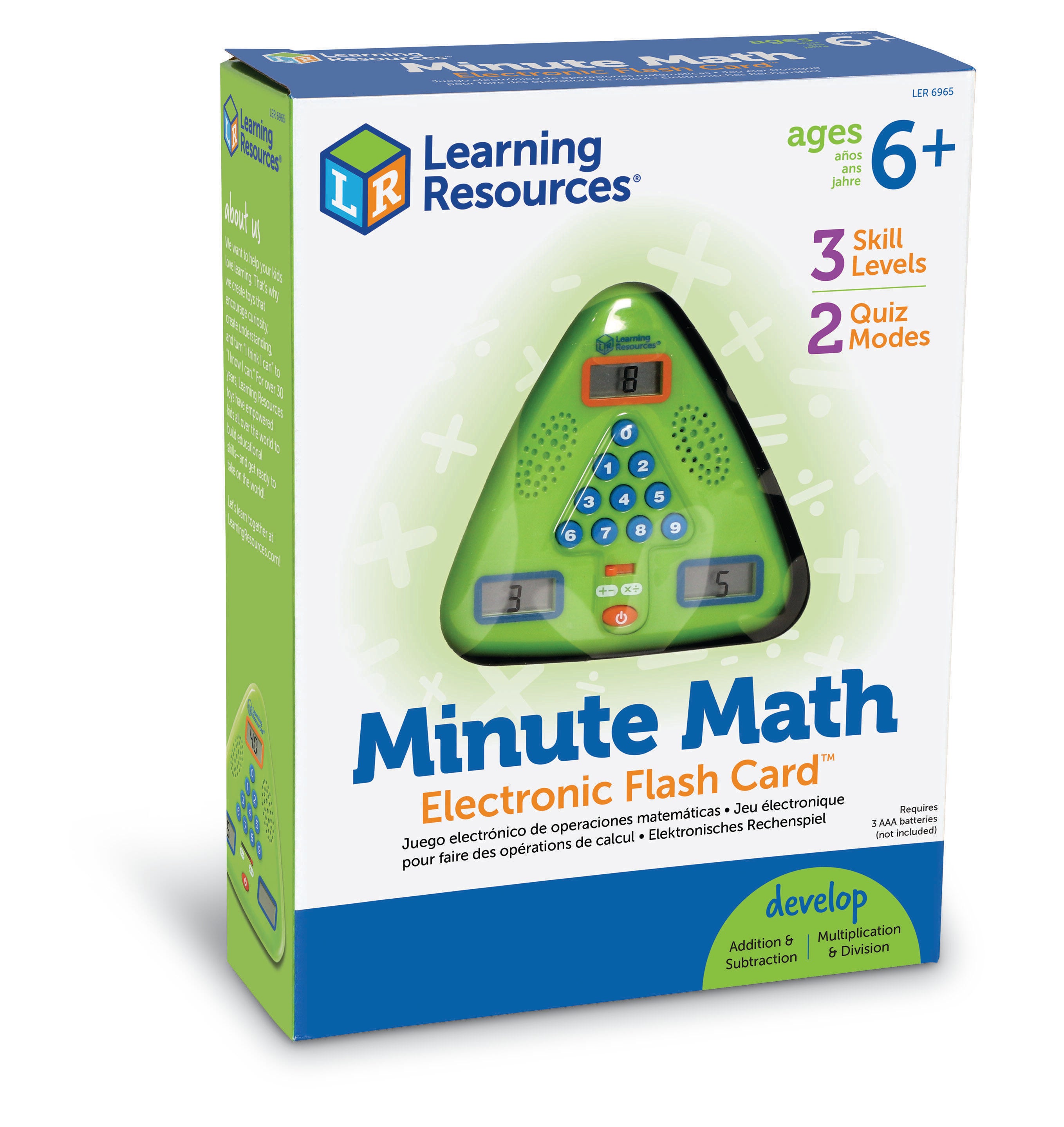 The Minute Math Electronic Flash Card from Learning Resources is a hand-held electronic game designed to build number fact fluency in just a minute! The familiar fact family triangle math concept is now electronic. Practice operations that include adding and subtracting, multiplying and dividing, and even early algebraic skills with equations that involve the commutative property. The game offers a 60-second timed mode, an untimed mode, and 3 levels of difficulty. It measures 5-1/2 inches and requires 3 AAA batteries. Recommended for grades 1 and up, and ages 6 and up. Batteries not includedFeatures