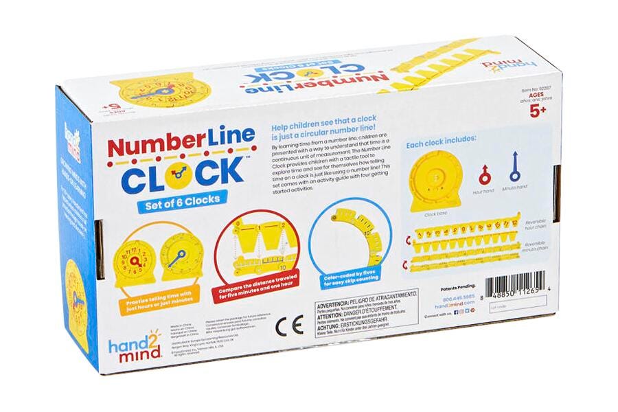 Hand2Mind NumberLine Clock, Set of 6, Grades 1 to 4