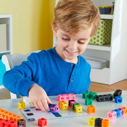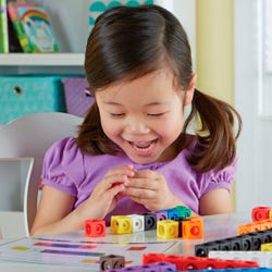 Students get a hands-on lesson in early math fundamentals every time they build with the MathLink Cubes Early Math Starter Set. This engaging activity set pairs 100 of our bestselling MathLink Cubes with 15 double-sided activity cards to create 30 learning challenges that make math lessons fun. Using the colorful cubes, children can learn the fundamentals of addition and subtraction, practice sequencing through color and shape recognition, or even learn about perspective through engaging 3-D building challenges. The sturdy cubes come in 10 bright colors, measure 3/4 x 3/4 inch, and can be snapped together or popped apart. Cubes work with all MathLink Cubes products, and add extra power to math lessons and building projects. Appropriate for ages 4 years and up.Features