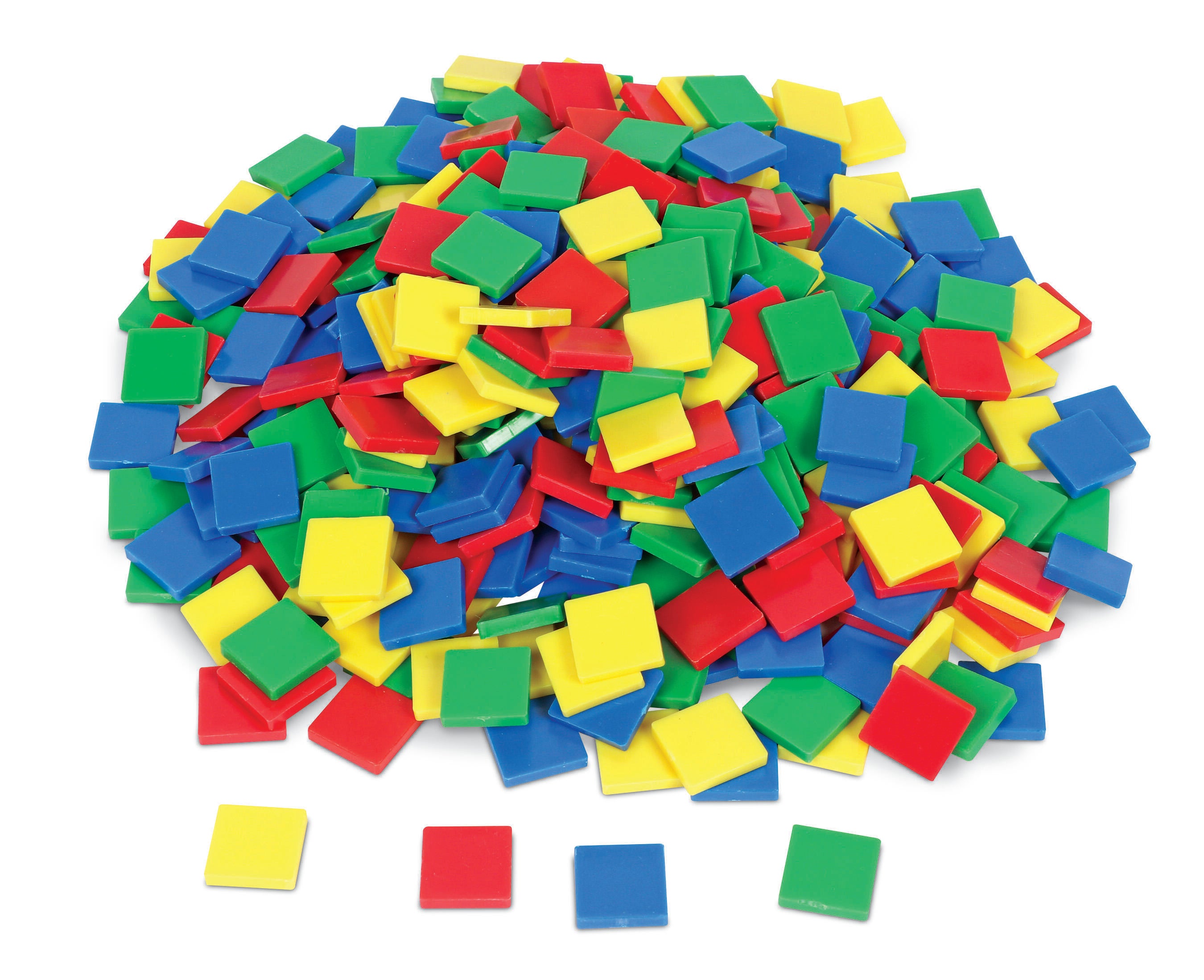 Learning Resources Color Mosaic Tile in assorted colors helps to build key skills necessary for early learners, from building to patterning to sorting and beyond. These colorful tiles provide an open-ended play experience for those on the start of their math learning journey. Tile is sold as 400 per pack. Each tile measures 1 x 1 inch.