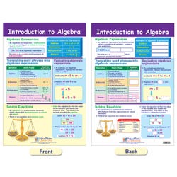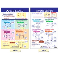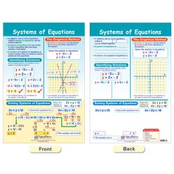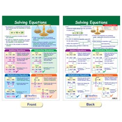 Graphically stimulating, well-organized and highly educational, the Algebra Skills Bulletin Board Chart Set provides an excellent reference resource for your classroom bulletin board or wall, or as a hands-on activity for instruction, review and reinforcement for students in your Math or STEM programs. The Chart Set includes a collection of 6 individual 12” x 18” laminated charts, each covering a separate, curriculum topic. Uniquely designed, Side 1 features a graphic overview of the topic while Side 2 provides “write-on/wipe-off” activity exercises for review and reinforcement. Graphic images and hands-on activities combine to provide comprehensive coverage of essential student information. Perfect for classroom, library or study room reference or for use in learning centers/small group activities; independent study and remediation; or as a teacher resource for introduction and review of key concepts. Topics covered: Algebra Skills; Solving Equations; Systems of Equations; Multistep Equations; Inequalities; Introduction to Algebra; and Properties of Addition & Multiplication.Features