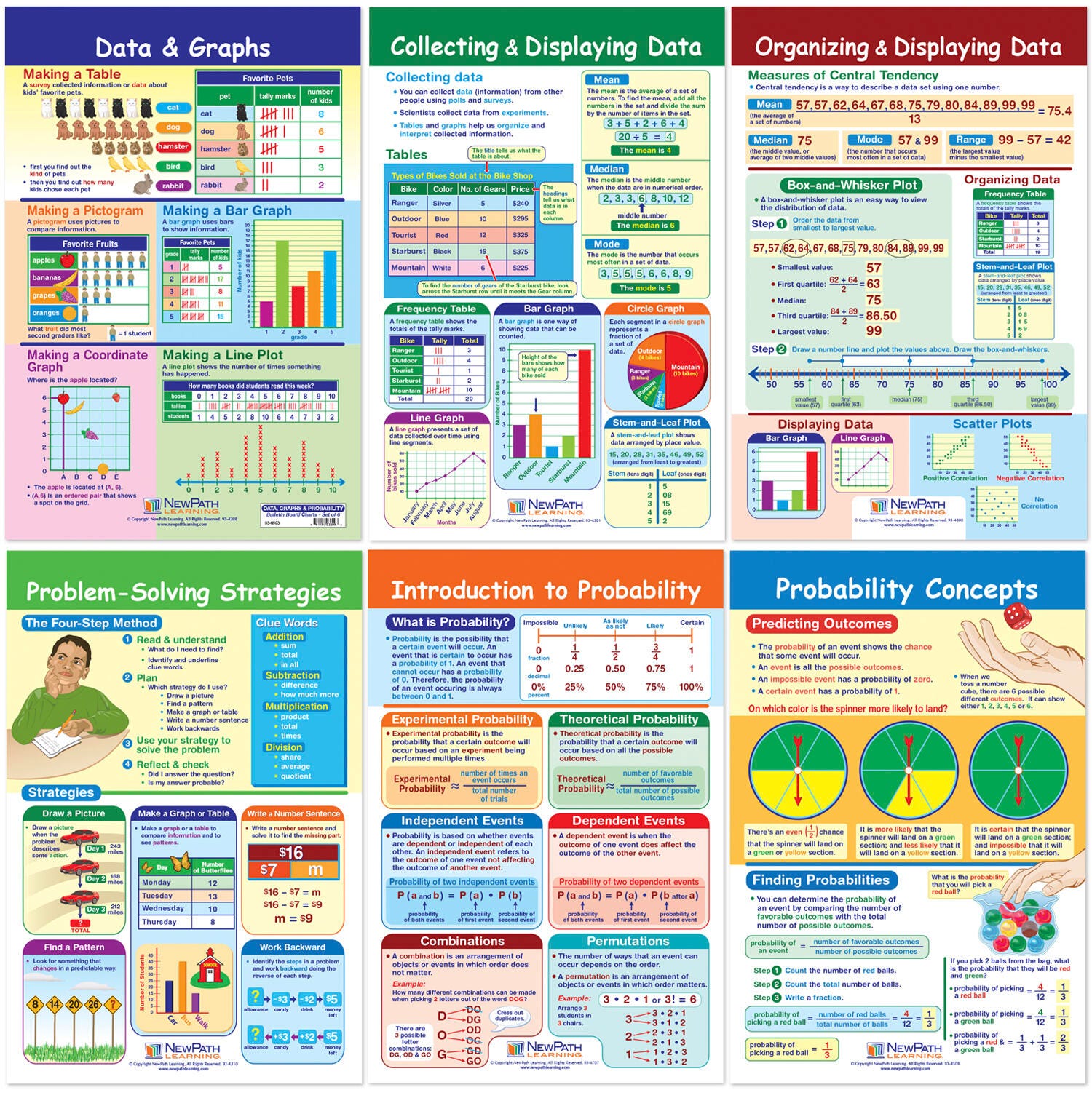 NewPath Learning Data, Graphs & Probability Bulletin Board Charts, Grades 6 to 8, Set of 6