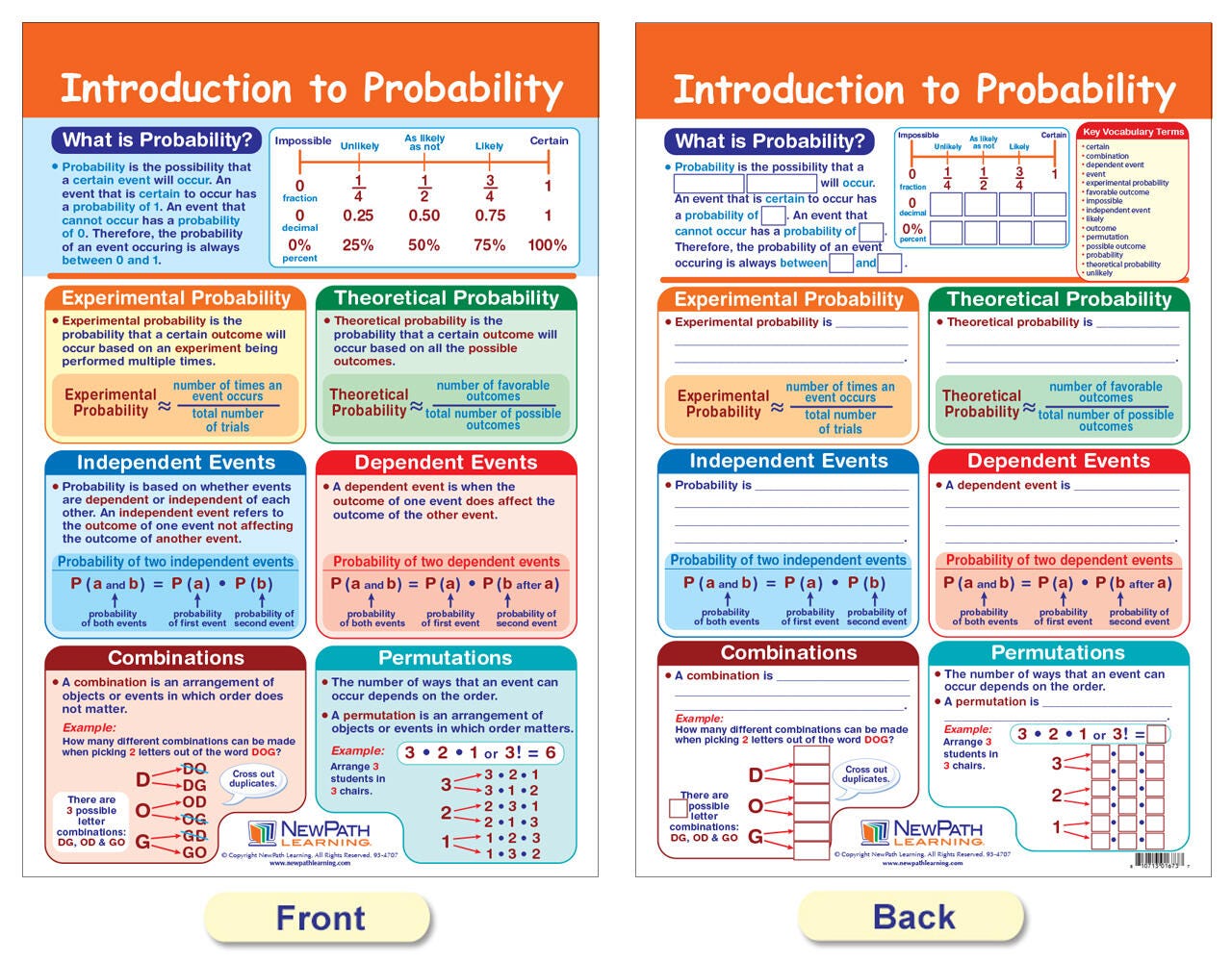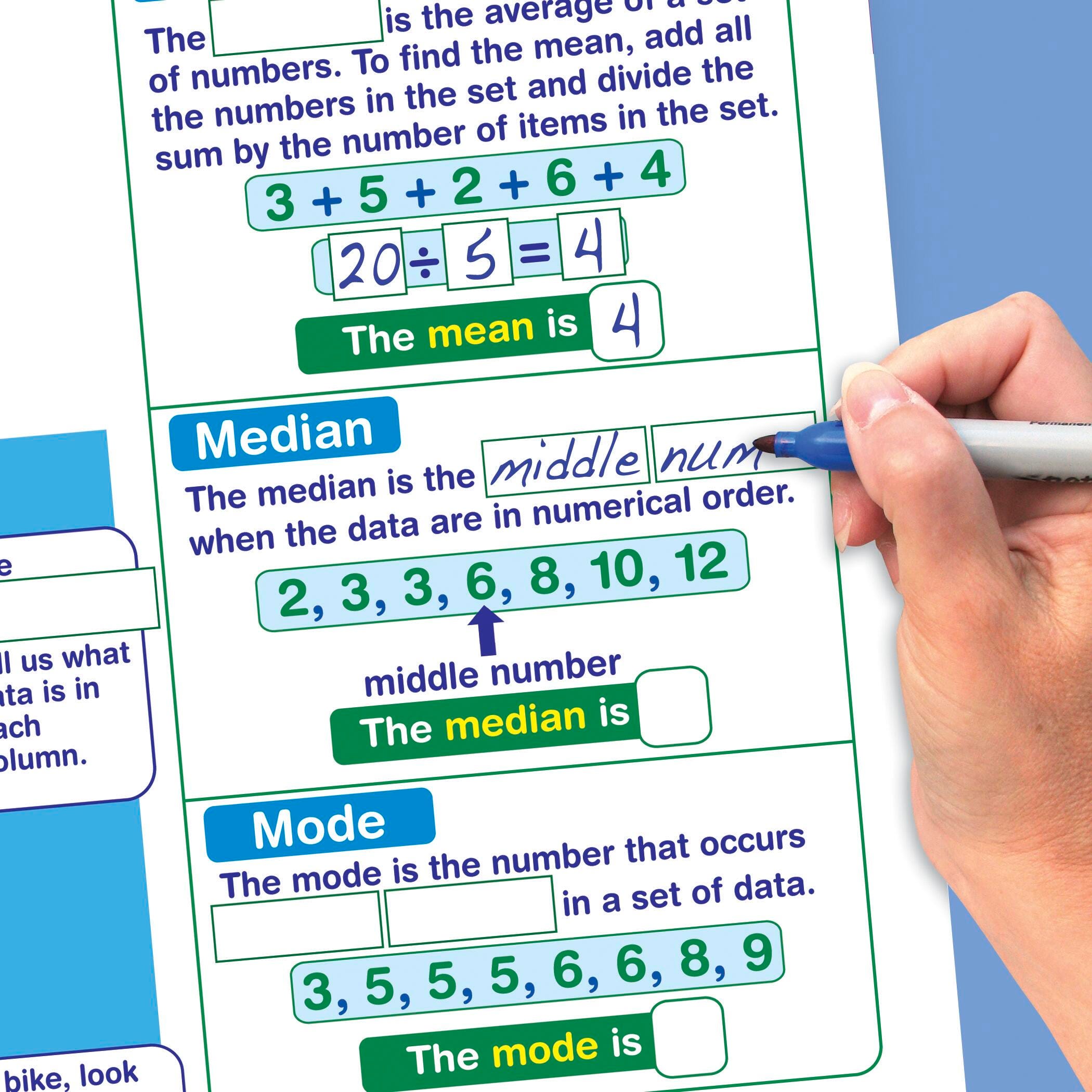 Graphically stimulating, well-organized and highly educational, the Data, Graphs & Probability Bulletin Board Chart Set provides an excellent reference resource for your classroom bulletin board or wall, or as a hands-on activity for instruction, review and reinforcement for students in your Math or STEM programs. The Chart Set includes a collection of 6 individual 12” x 18” laminated charts, each covering a separate, curriculum topic. Uniquely designed, Side 1 features a graphic overview of the topic while Side 2 provides “write-on/wipe-off” activity exercises for review and reinforcement. Graphic images and hands-on activities combine to provide comprehensive coverage of essential student information. Perfect for classroom, library or study room reference or for use in learning centers/small group activities; independent study and remediation; or as a teacher resource for introduction and review of key concepts. Topics covered: Collecting & Displaying Data; Problem-Solving Strategy; Data & Graphs; Introduction to Probability; Probability Concepts; and Organizing & Displaying Data.Features