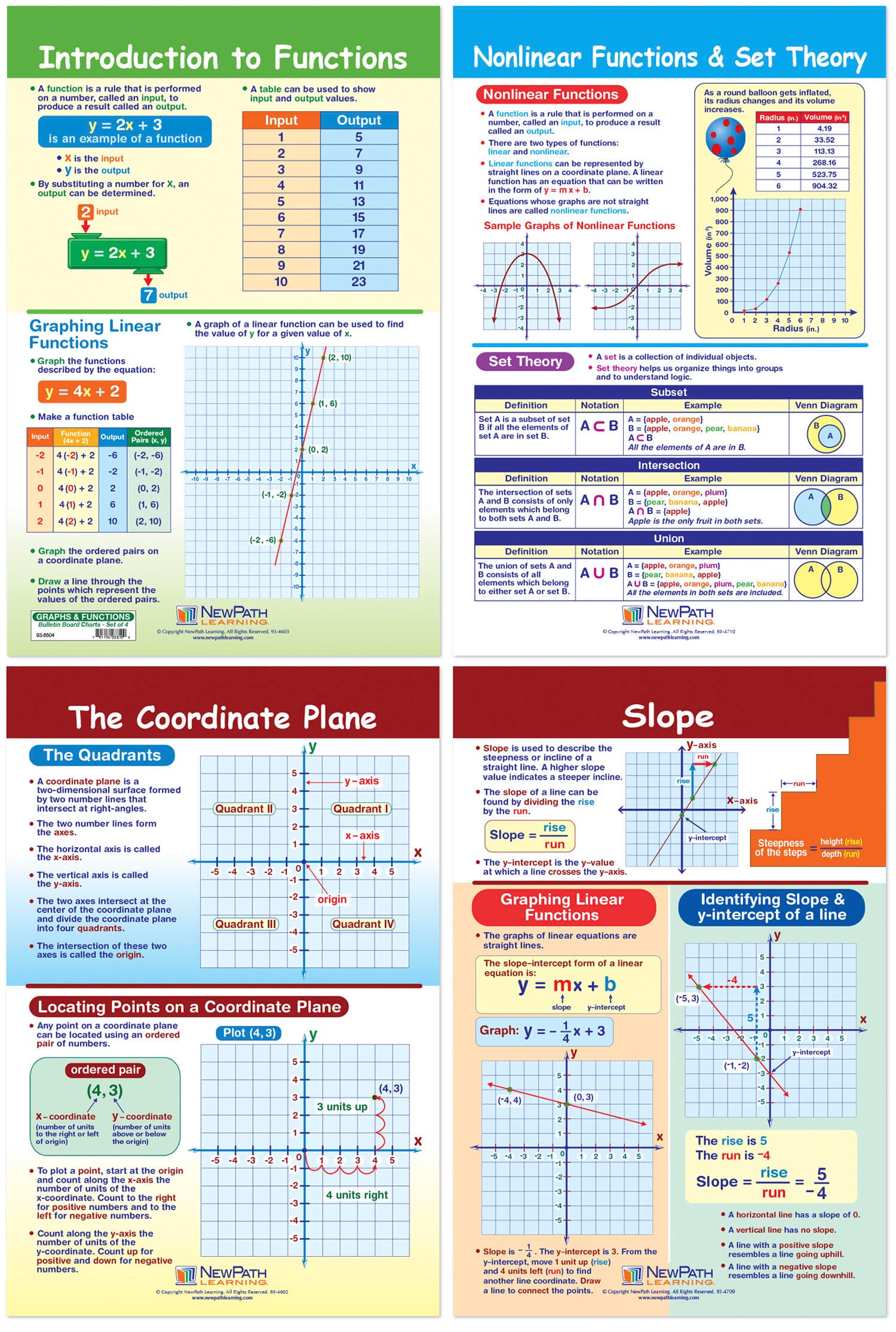 NewPath Learning Graphs & Functions Bulletin Board Charts, Grades 6 to 8, Set of 4