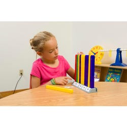 Use this versatile tool and Unifix Cubes to model and understand number concepts, base ten, and operations through 100. Comprehensive teacher's guide includes illustrated activities for number relationships, addition, subtraction, multiplication, and division. Base is 3 x 9 inches with 10 positions, and includes 22 number label cards (10s, 20s, 30s, 40s, 50s) and 100-grid card to position behind stacks of cubes. Unifix Cubes are sold separately.
