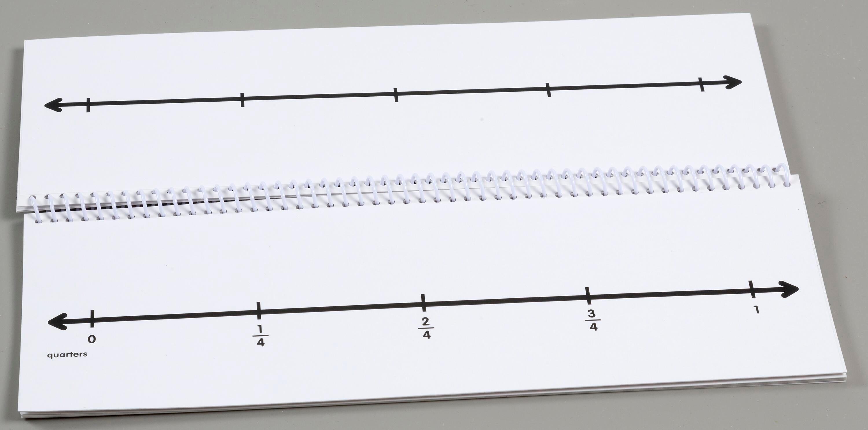Your students will be flipping over fractions with this versatile write-on/wipe-off book. Students can use the 18 different fraction number lines featured in this book to solve a wide variety of fraction, decimal, and percentage problems. Durable spiral-bound book is 4 x 12 inches and includes lines featuring thirds, quarters, fifths, eighths, tenths, twelfths, sixteenths, percents, as well as blank lines (single and dual). 20 pages.