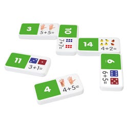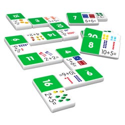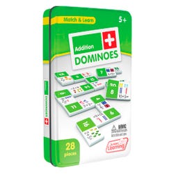Addition dominoes include a 28 piece set on thick plastic dominoes. Children will love the feel of real dominoes as they complete the addition matching game. Appropriate for ages 5-10 years old.Features