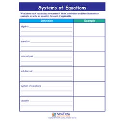 The perfect complement to any Math program, the set includes 10 laminated, “Write-on/Wipe-off” guides. Each 17 x 11 inch laminated guide covers a different topic and includes 4 panels featuring an illustrated overview of the concept; labeling & review exercises; a graphic organizer of the topic; and assessment/review questions. The set also includes a Teacher Guide with instructions for successful classroom integration and a 1-Year Premium Subscription to NewPath’s Online Learning Program providing access to online quizzes, games, activities, and more! Provides comprehensive coverage of the following topics: Algebra Skills; Integers & Exponents; The Real Numbers; Plane Geometry; Perimeter & Area; Ratios, Rates & Proportions; Applying Percents; Organizing & Displaying Data; Arithmetic & Geometric Sequences; and Systems of Equations.Features