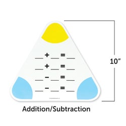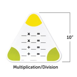 Learning Resources Write and Wipe Fact Family Board measuring 10 inches high comes in triangular format to provide a powerful method for building number fact fluency and teaching fact families. Front side of the board focuses on both addition/subtraction while the reverse side focuses on multiplication/division. Math-fact triangle board is designed to support the development of higher-level algebraic skills that include equation building, the commutative property and problem solving. Both the sides of the board has write and wipe surface. Pack of 5.Features