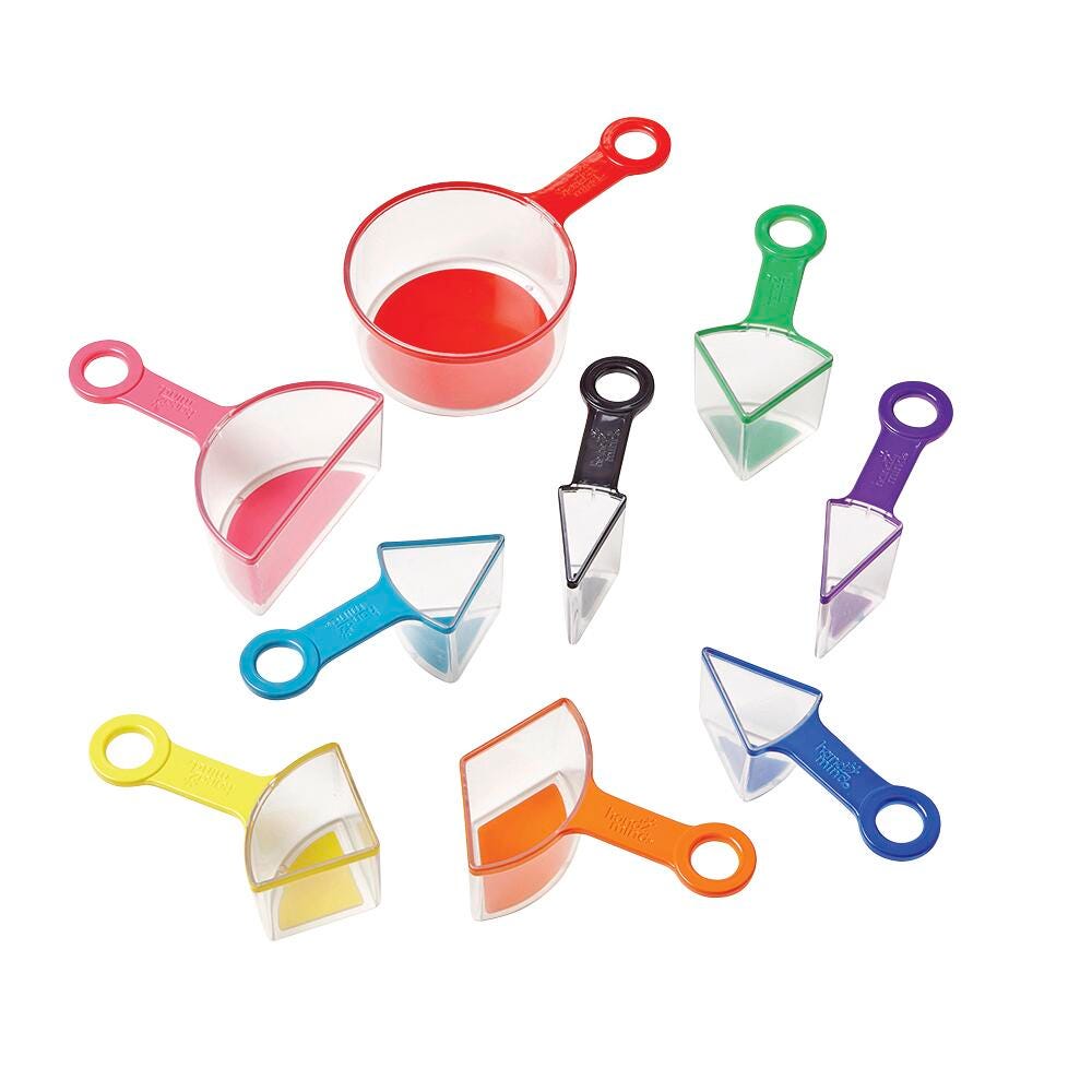 Our Rainbow Fraction Measuring Cups provide a unique 3D representation that helps students connect volume and fractions.