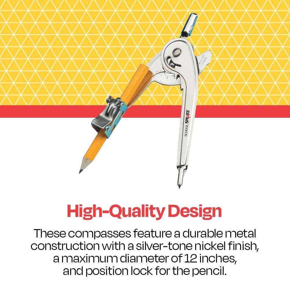 School Smart Ball Bearing Compass with Short Point, Metal Nickel Finish, Pack of 12