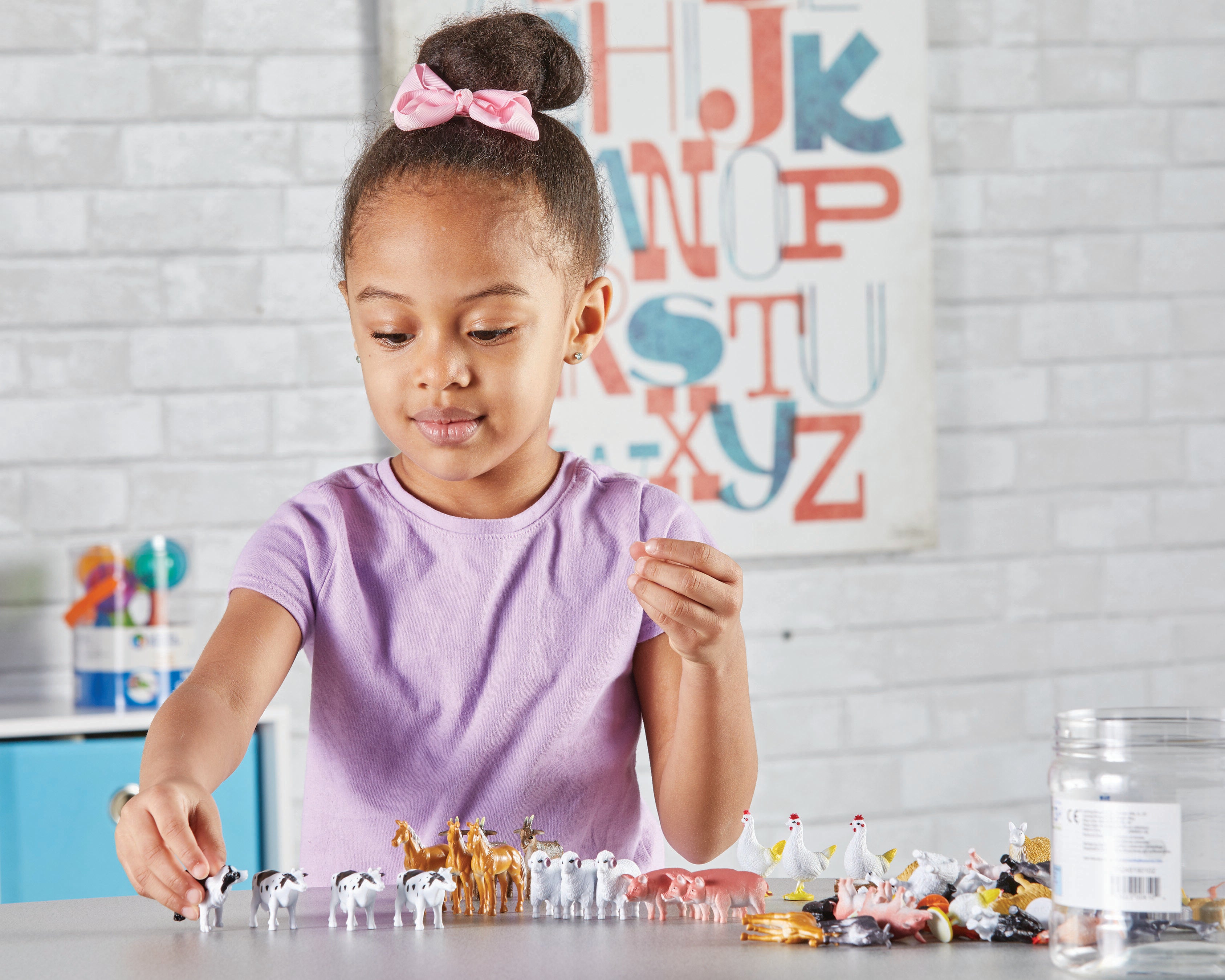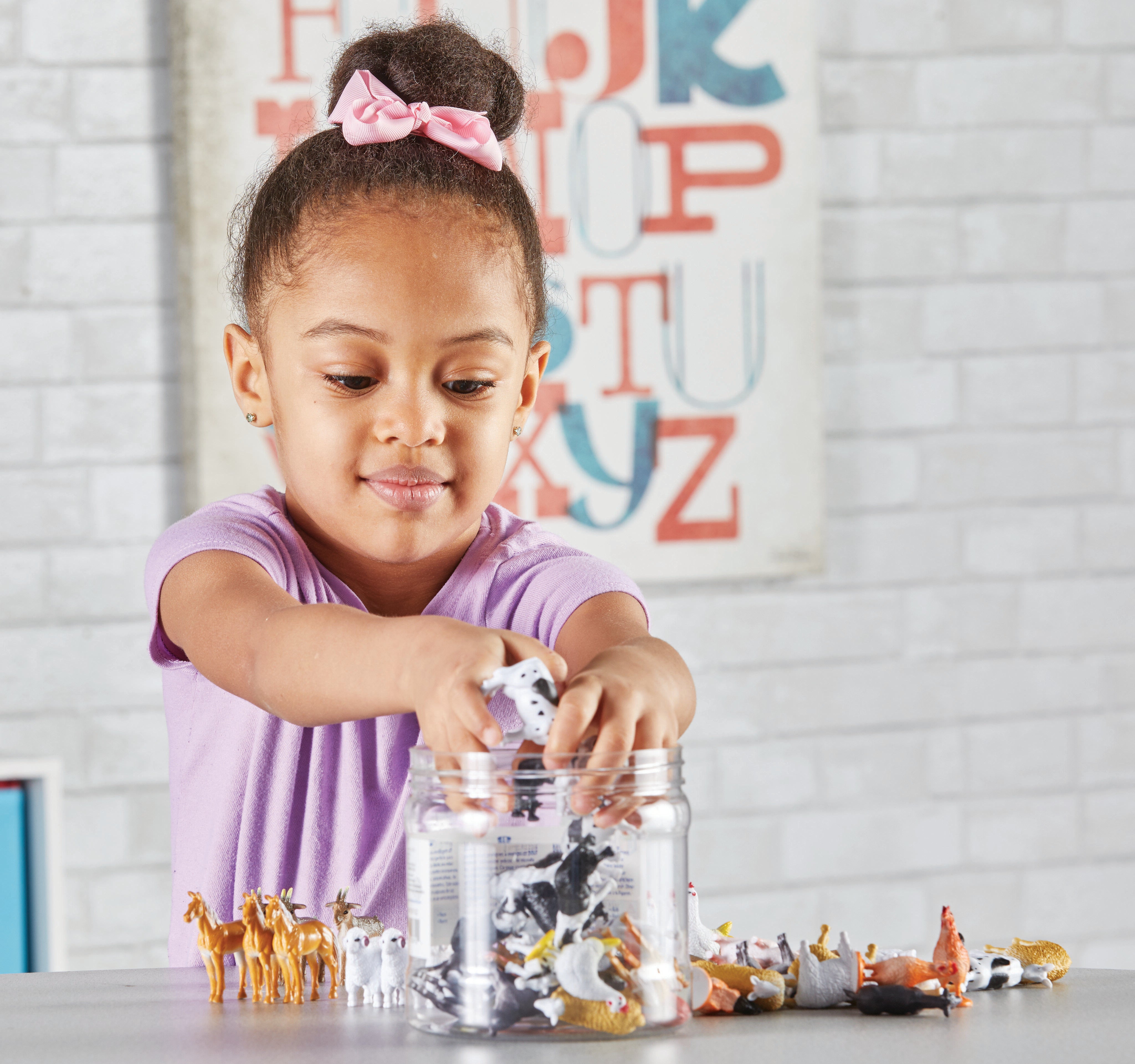 Range of animals and colors allows for counting, sorting, pattern making, simple addition or subtraction activities, and more