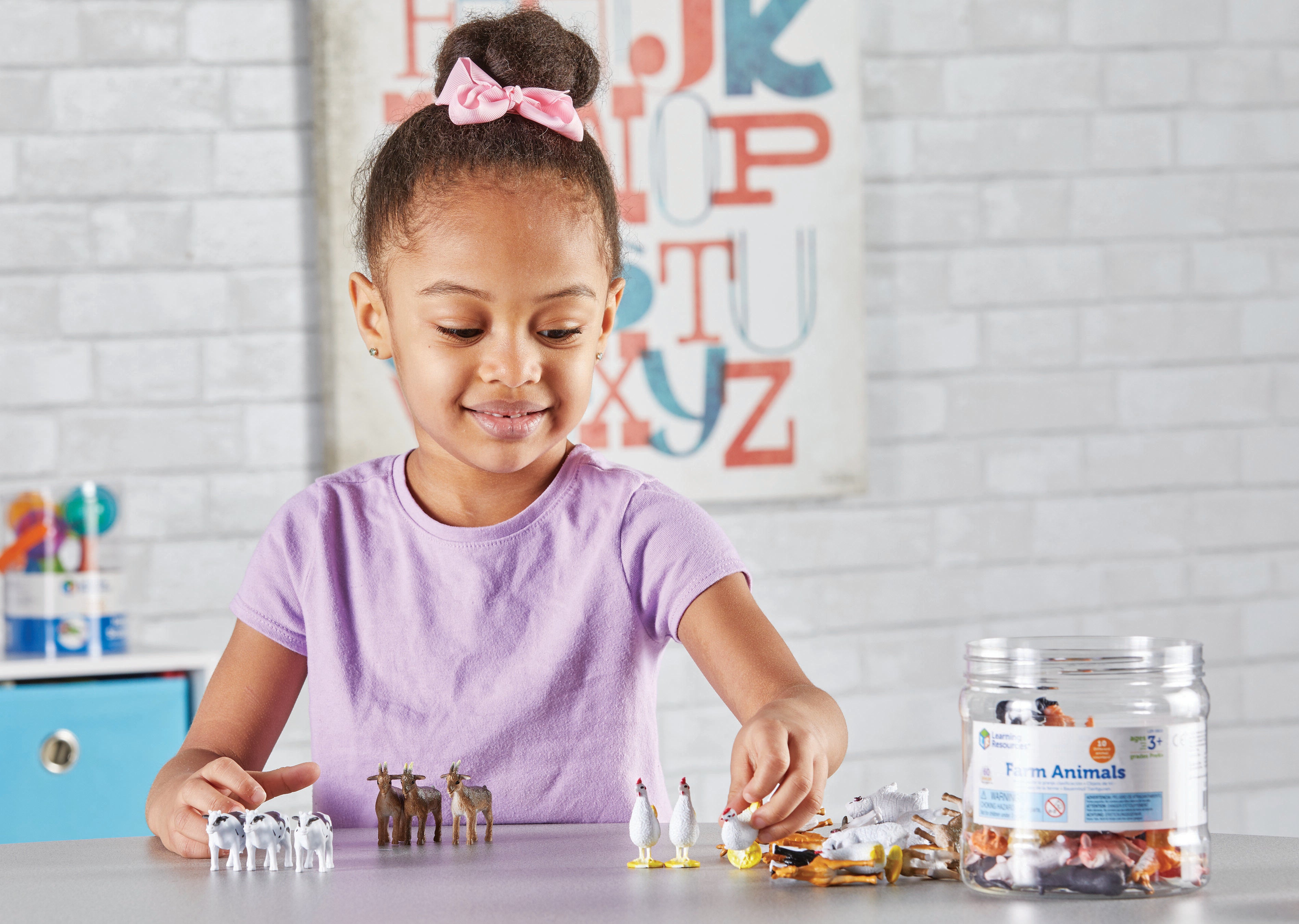 Count on fun on the farm with these adorable, colorful animals from Learning Resources. Friendly, farm animal favorites provide an engaging way for kids to develop number and quantity relationships, patterning, counting, and sorting skills. This set of 60 has realistically detailed animals, with 6 of each of the following: horses, pigs, roosters, hens, cows, goats, sheep, dogs, rams, and donkeys.