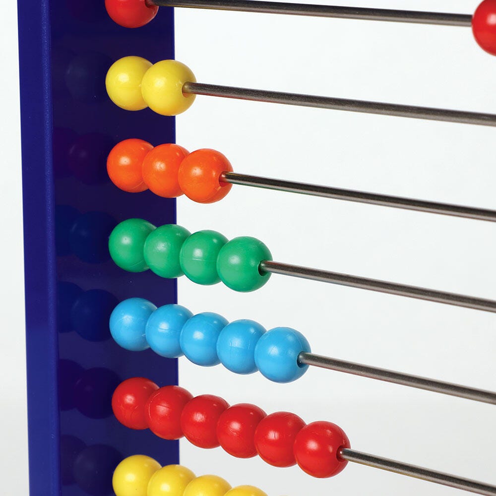 - Ten colorful rows of beads slide helping early learners understand counting, addition and subtraction