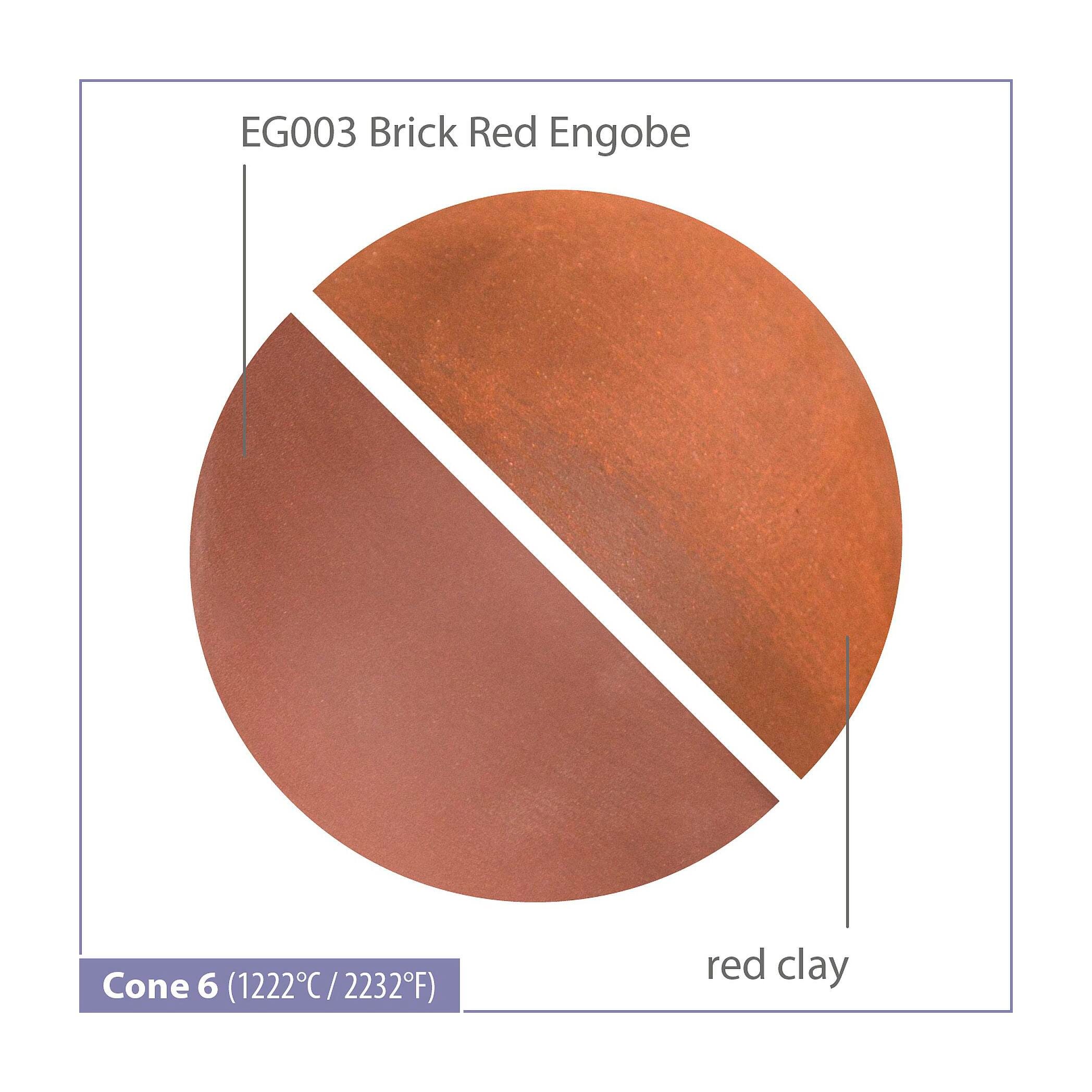 Engobes are a hybrid of slip, glaze and underglaze, used to coat your clay body to your preferred finish/color and are often used for a variety of decorative techniques, such as sgraffito and majolica. They can be applied to wet clay, greenware or bisque and fire from cones 5-10. This Brick Red Engobe from Mayco fires a deep matte reddish brown, but can be layered underneath a clear glaze to intensify the color. Please note, the choice of clay body, amount and thickness applied, firing proces, and temperature will significantly impact the fired result. The glaze comes in a 1 pint container.Features