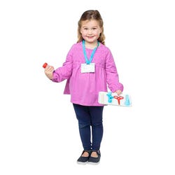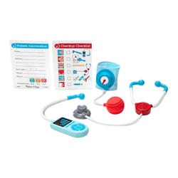 Children three and older can pretend to check temperature, heartbeat, blood pressure, eyesight, hearing, and more. There are play tools like a syringe, play scissors, and reflex hammer, as well as play bottles, and bandages for examining and treating patients. Reusable activity cards and fun details like an ID badge on a lanyard and a magazine for patients in the waiting room round out the doctor’s office experience. The play set is a fun and engaging way to ease any feelings of stress associated with a visit to the doctor and to encourage nurturing and empathetic play. Spark a child’s creativity and imagination, and inspire young healers for years to come! Appropriate for ages 3 years and up.Features