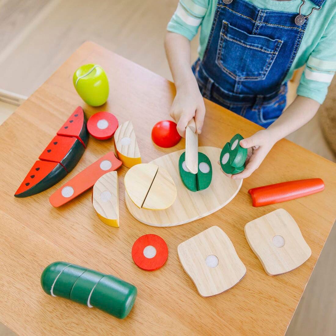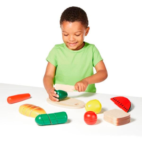 Encourage imaginative play and help develop fine motor skills with this wooden food-cutting playset by Melissa & Doug.