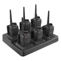 Easily connect your team with the Midland BizTalk MB400 Business Radio Bundle. The MB400X6MC comes complete with six IP67 waterproof industrial grade MB400 business radios, batteries, antennas, and belt clips along with an MGC400 Multi-Unit charger that charges all 6 radios from a single outlet. Pre-programmed right out of the box with 16 business band channels or can be custom programmed using the programming software and separately purchased programming cable.Features
