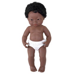 Miniland Baby Doll African Boy with Down Syndrome, 15 Inches