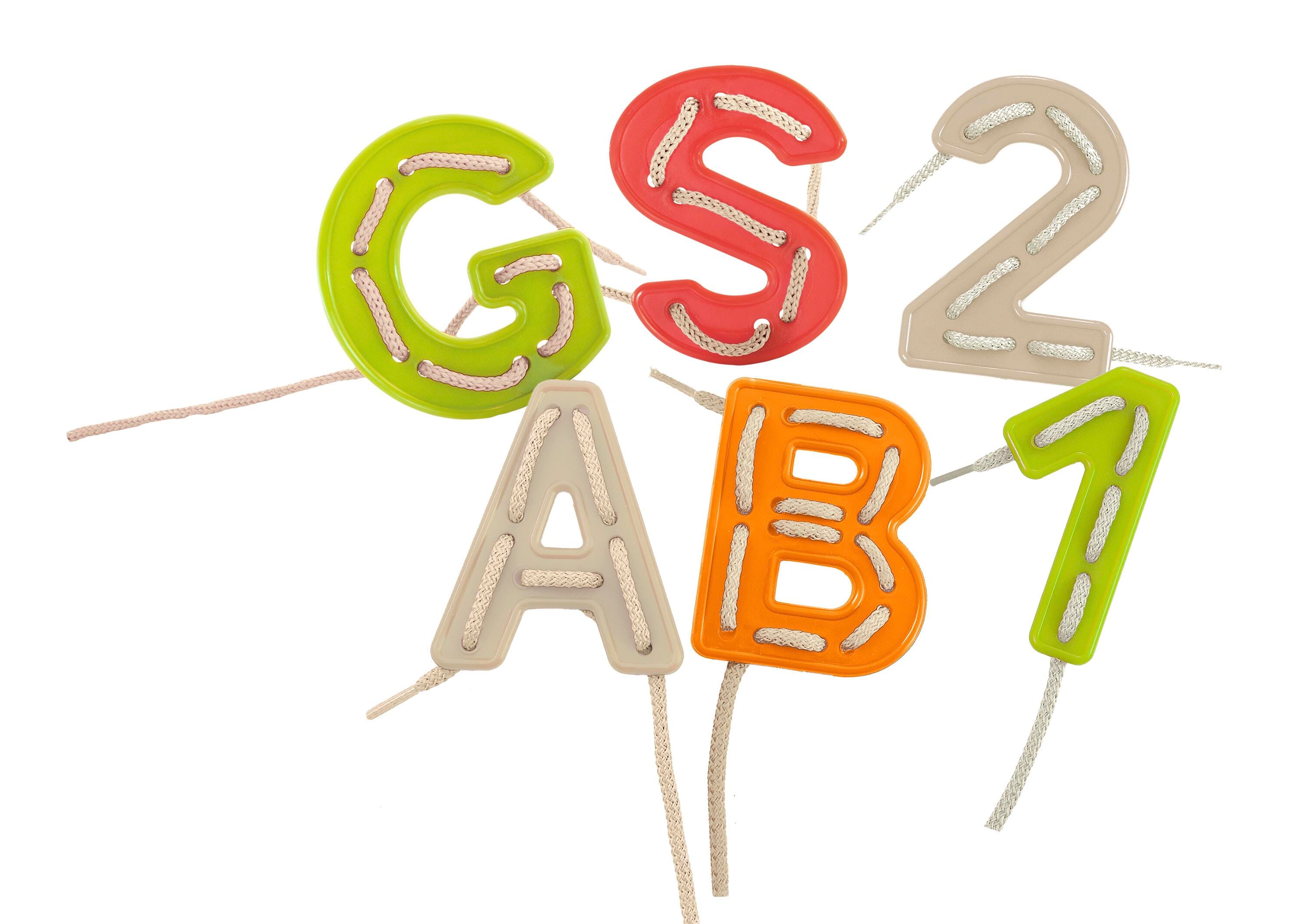 - Sewing the laces through the letters helps develop fine motor skills and coordination